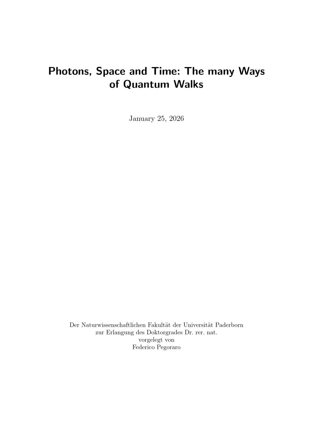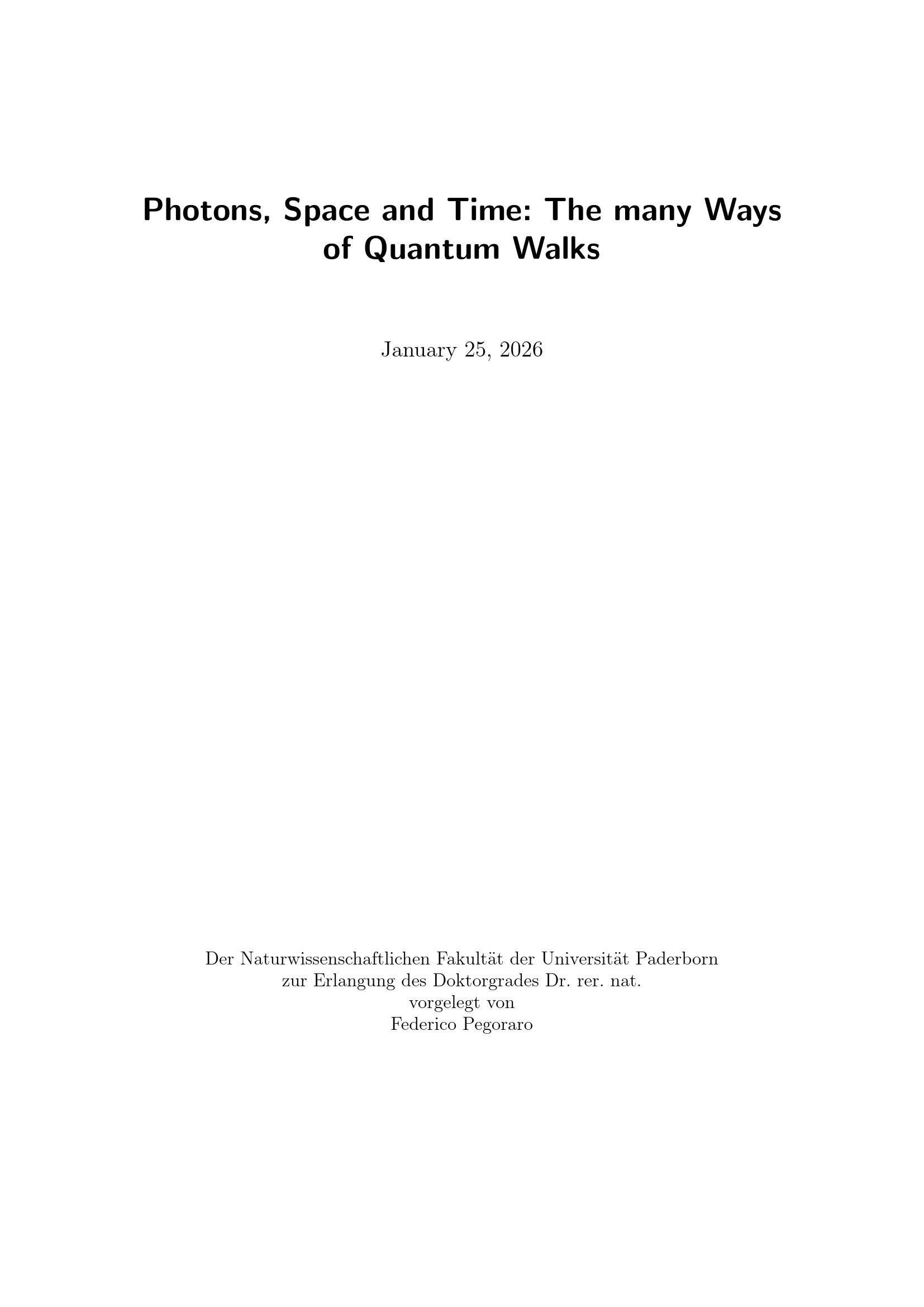 Photons, space and time : the many ways of quantum walks / Federico Pegoraro ; Erstgutachter: Prof. Dr. Christine Silberhorn, Zweitgutachter: Prof. Dr. Tim Bartley