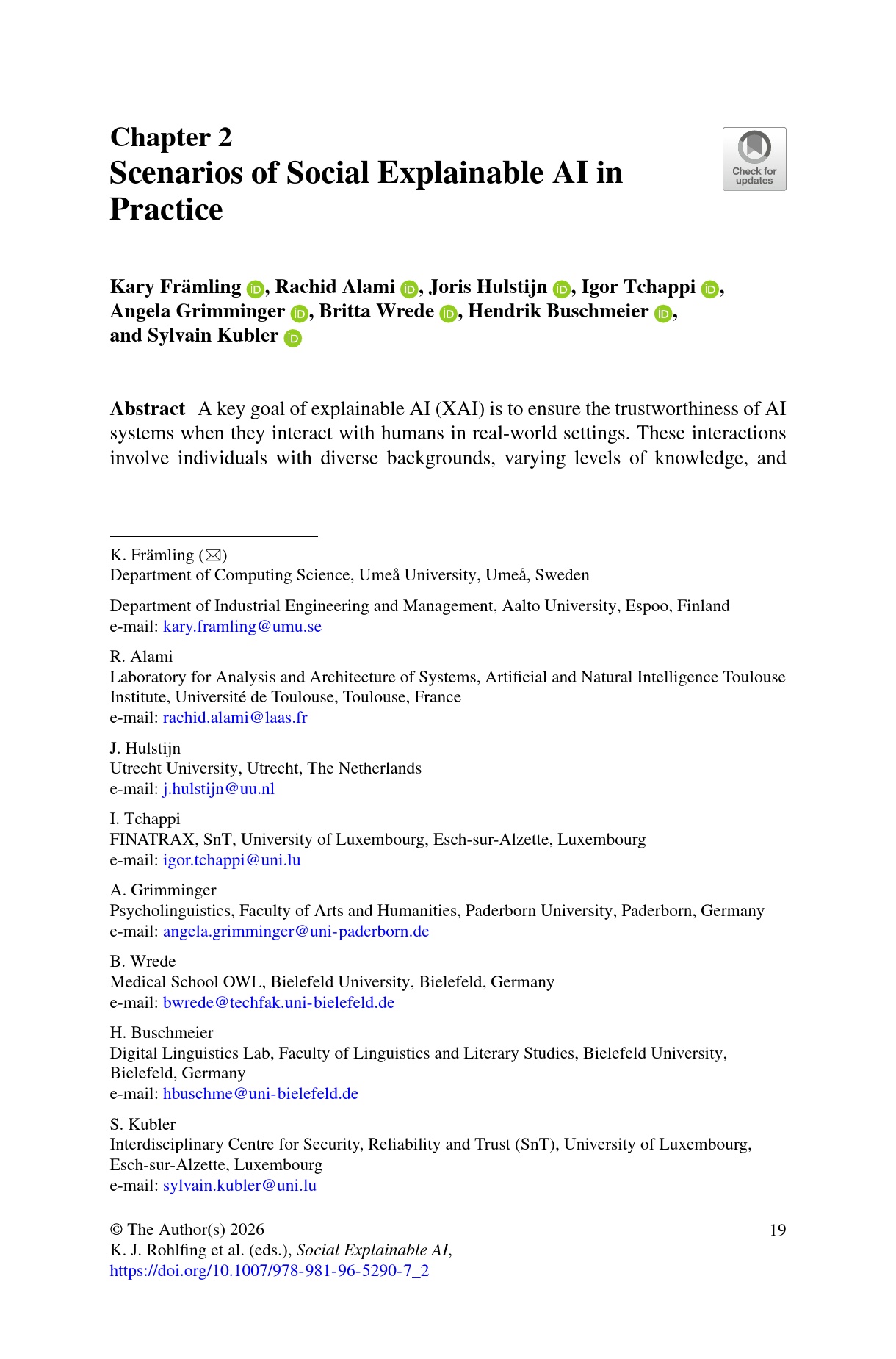 Social explainable AI : communications of NII Shonan meetings / Katharina J. Rohlfing, Kary Främling, Brian Lim, Suzana Alpsancar, Kirsten Thommes editors