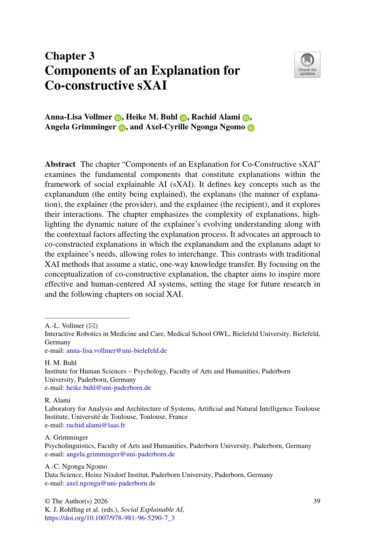 Social explainable AI : communications of NII Shonan meetings / Katharina J. Rohlfing, Kary Främling, Brian Lim, Suzana Alpsancar, Kirsten Thommes editors
