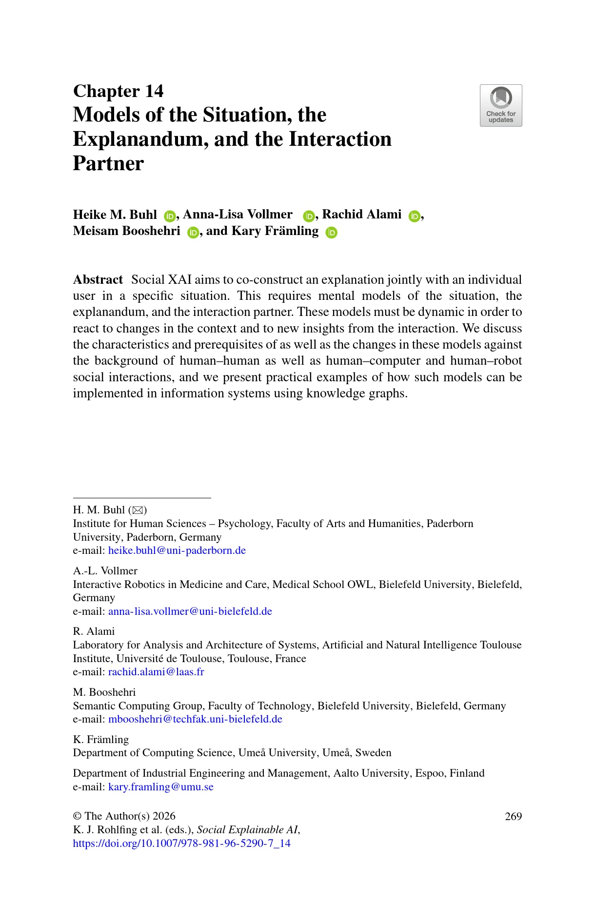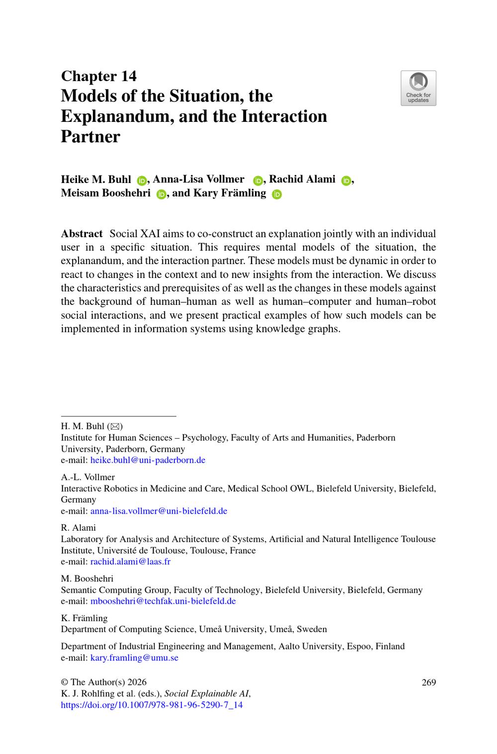 Social explainable AI : communications of NII Shonan meetings / Katharina J. Rohlfing, Kary Främling, Brian Lim, Suzana Alpsancar, Kirsten Thommes editors