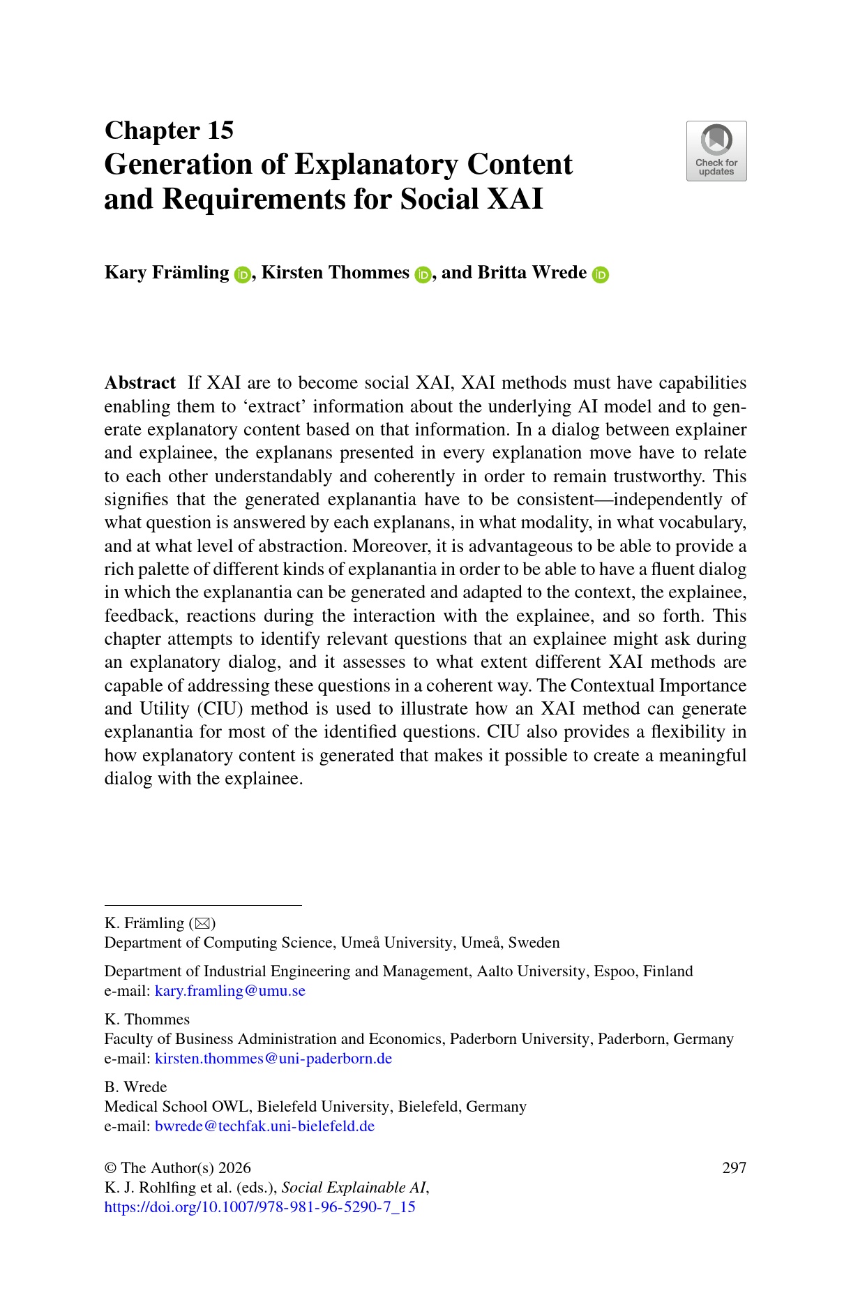Social explainable AI : communications of NII Shonan meetings / Katharina J. Rohlfing, Kary Främling, Brian Lim, Suzana Alpsancar, Kirsten Thommes editors