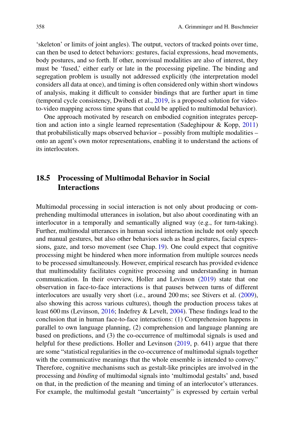 18.5 Processing of Multimodal Behavior in Social Interactions