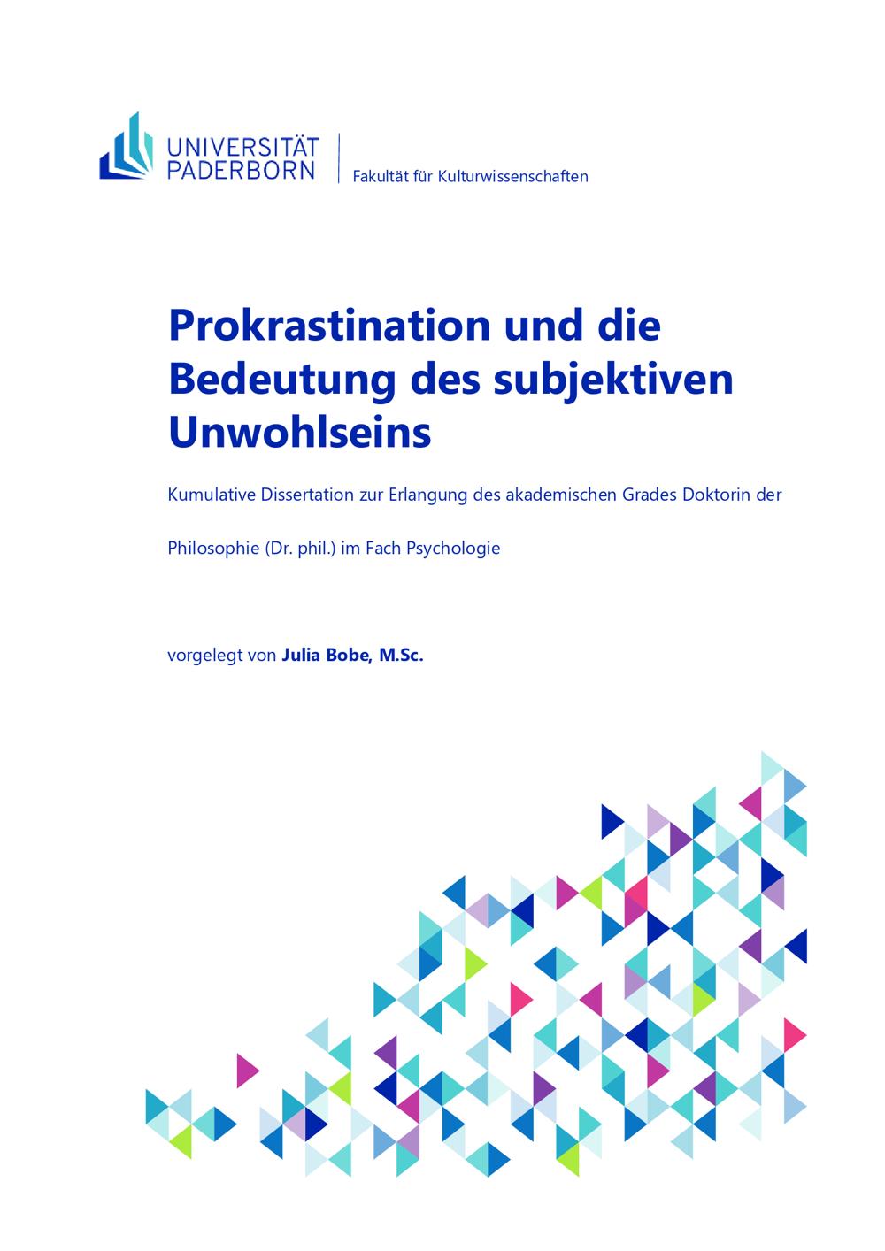 Prokrastination und die Bedeutung des subjektiven Unwohlseins / Julia Bobe ; Erstgutachterin und Betreuerin: Prof. Dr. Katrin B. Klingsieck, Zweitgutachterin: Prof. Dr. Heike M. Buhl