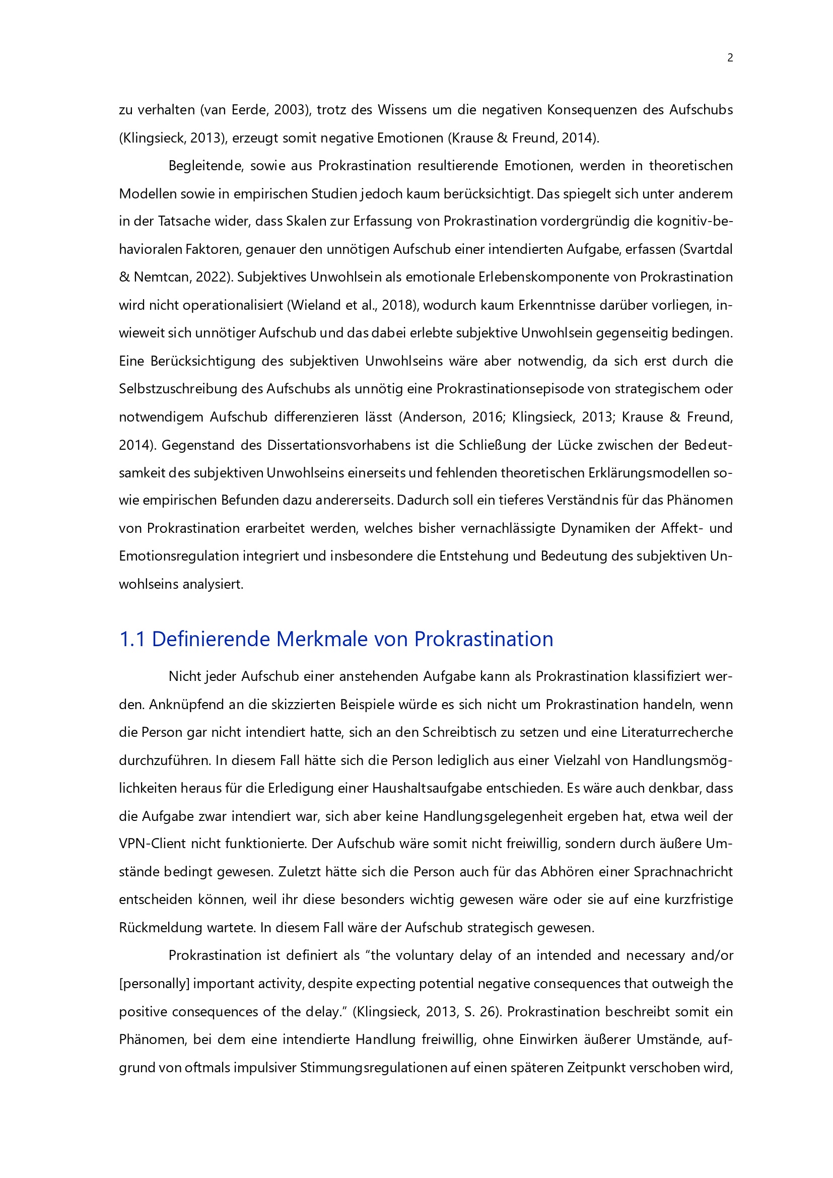 1.1 Definierende Merkmale von Prokrastination