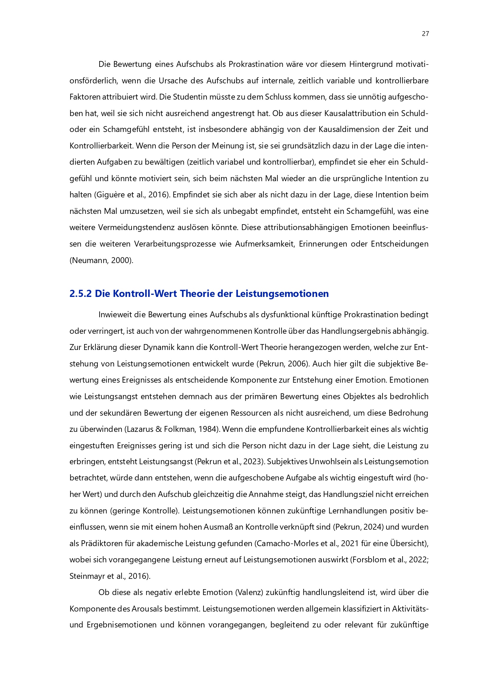 2.5.2 Die Kontroll-Wert Theorie der Leistungsemotionen