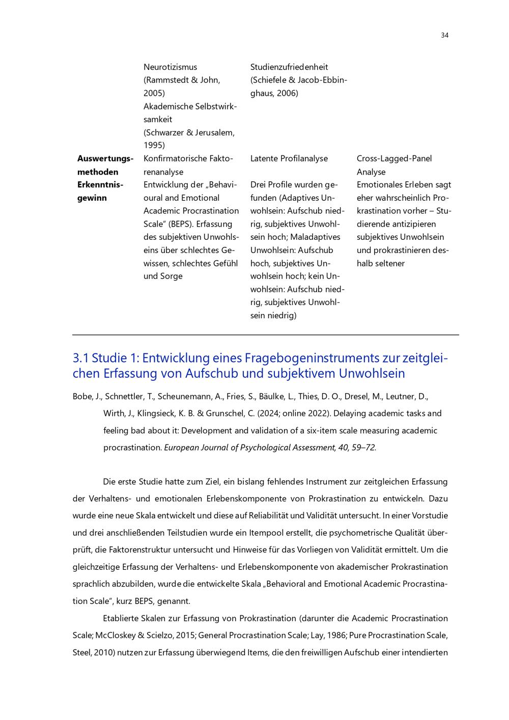3.1 Studie 1: Entwicklung eines Fragebogeninstruments zur zeitgleichen Erfassung[...]