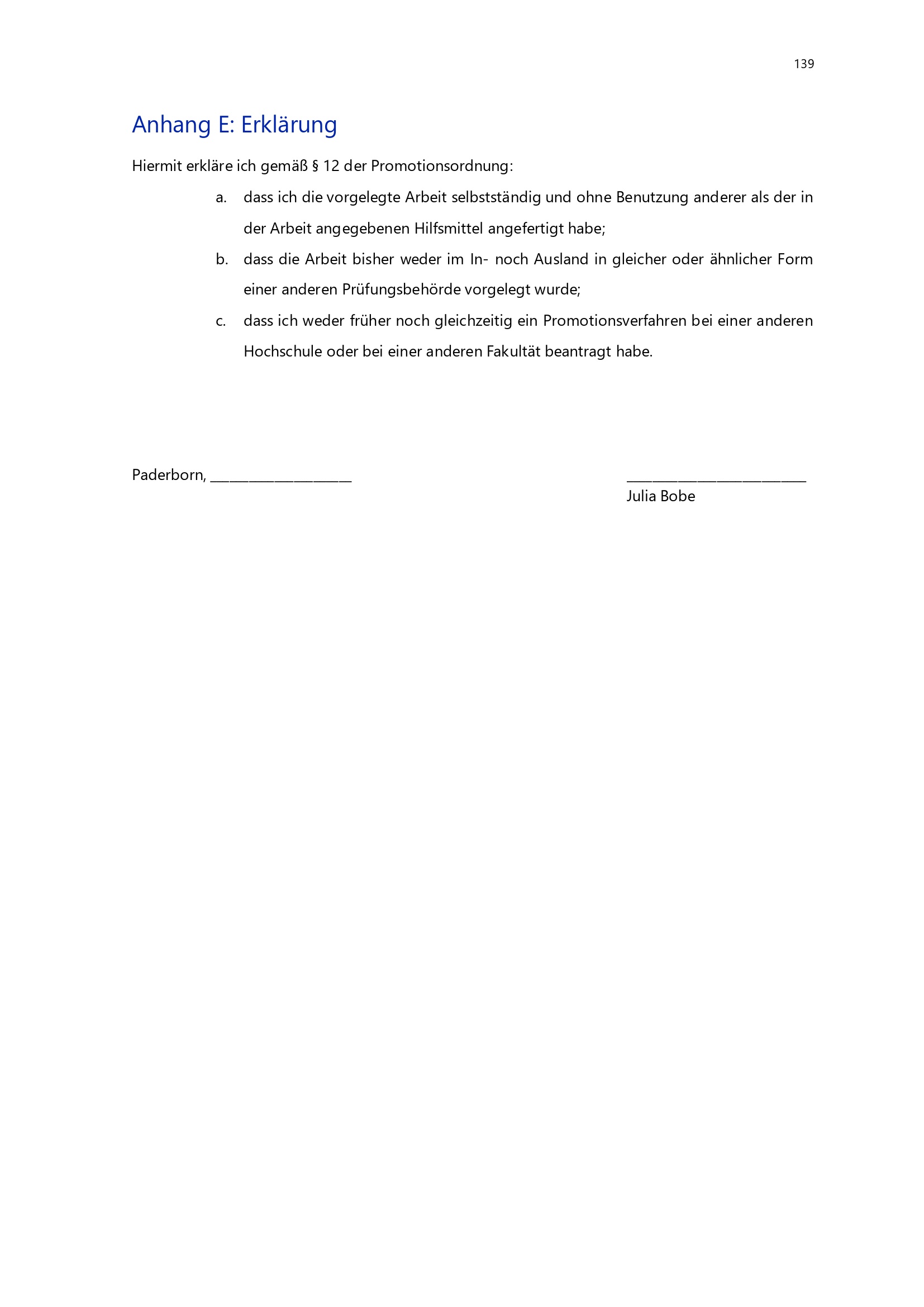 Anhang E: Erklärung