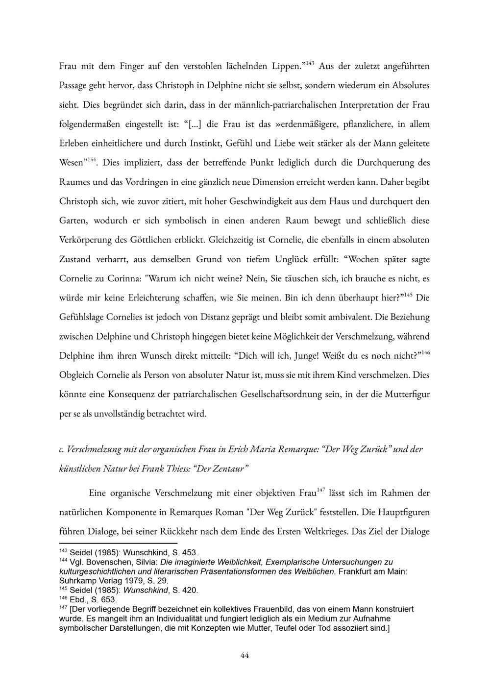 c. Verschmelzung mit der organischen Frau in Erich Maria Remarque: “Der Weg Zurück”[...]