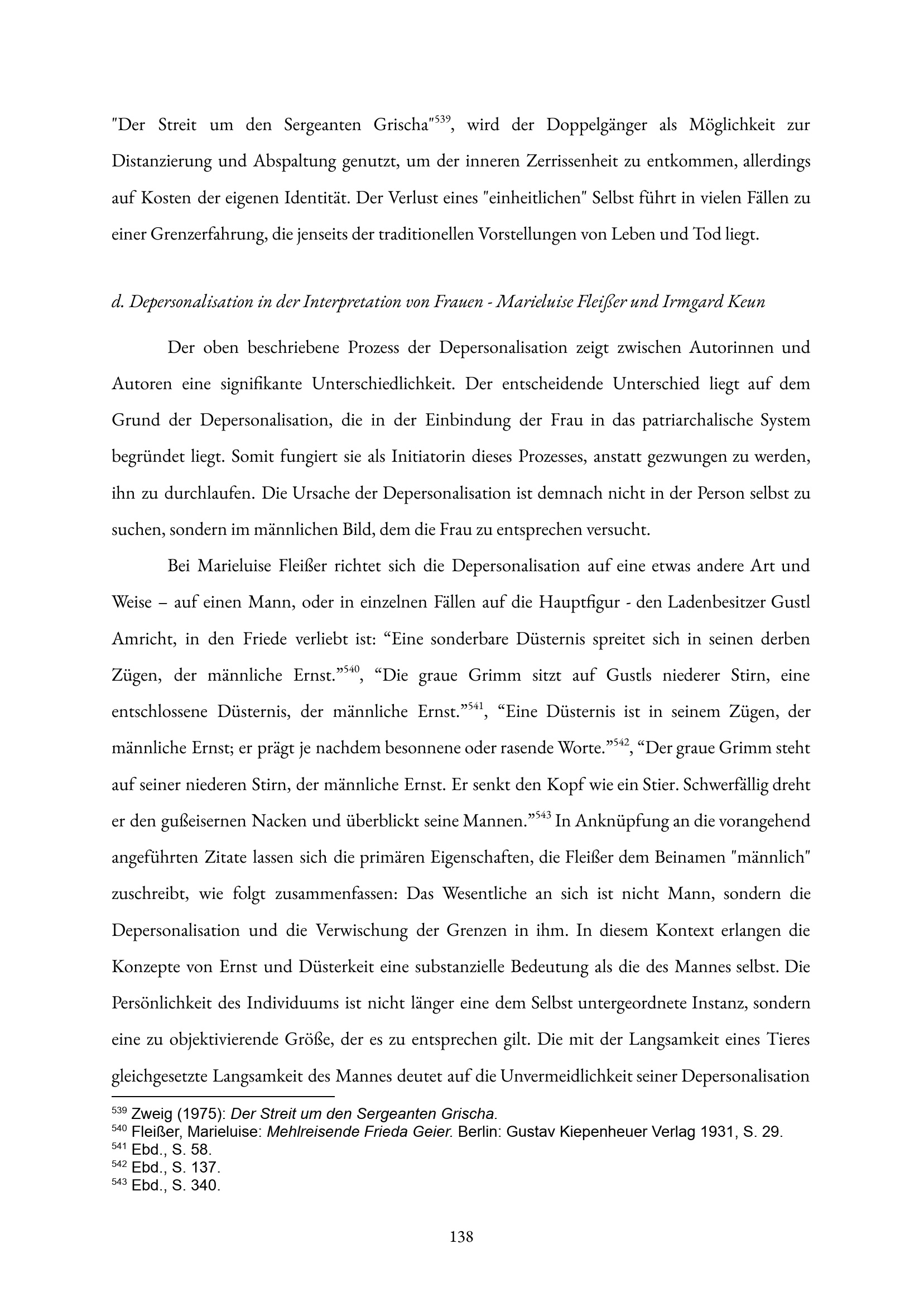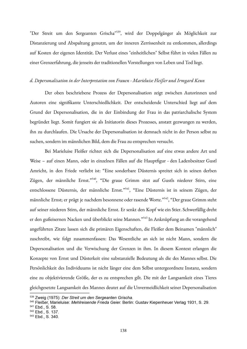 d. Depersonalisation in der Interpretation von Frauen - Marieluise Fleißer und Irmgard[...]