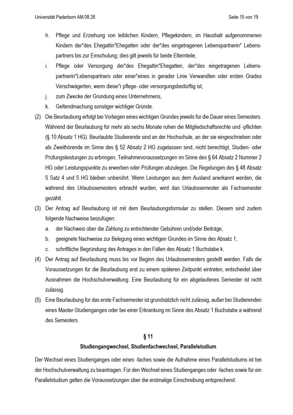 Einschreibungsordnung der Universität Paderborn : vom 28. April 2026