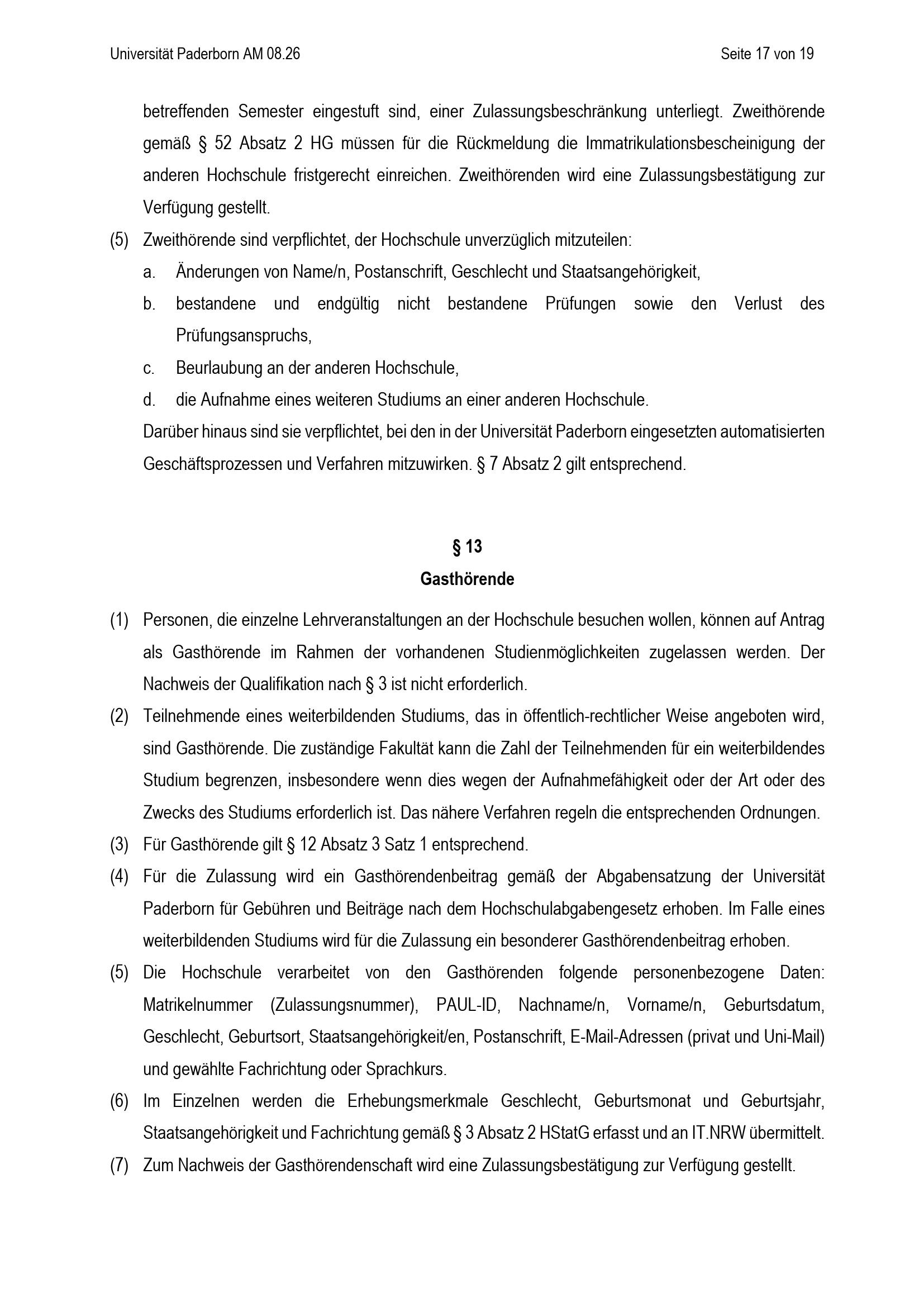 Einschreibungsordnung der Universität Paderborn : vom 28. April 2026