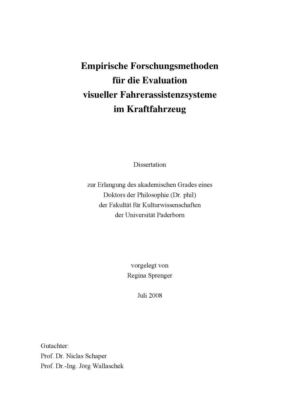 Empirische Forschungsmethoden für die Evaluation visueller Fahrerassistenzsysteme im Kraftfahrzeug / Regina Sprenger