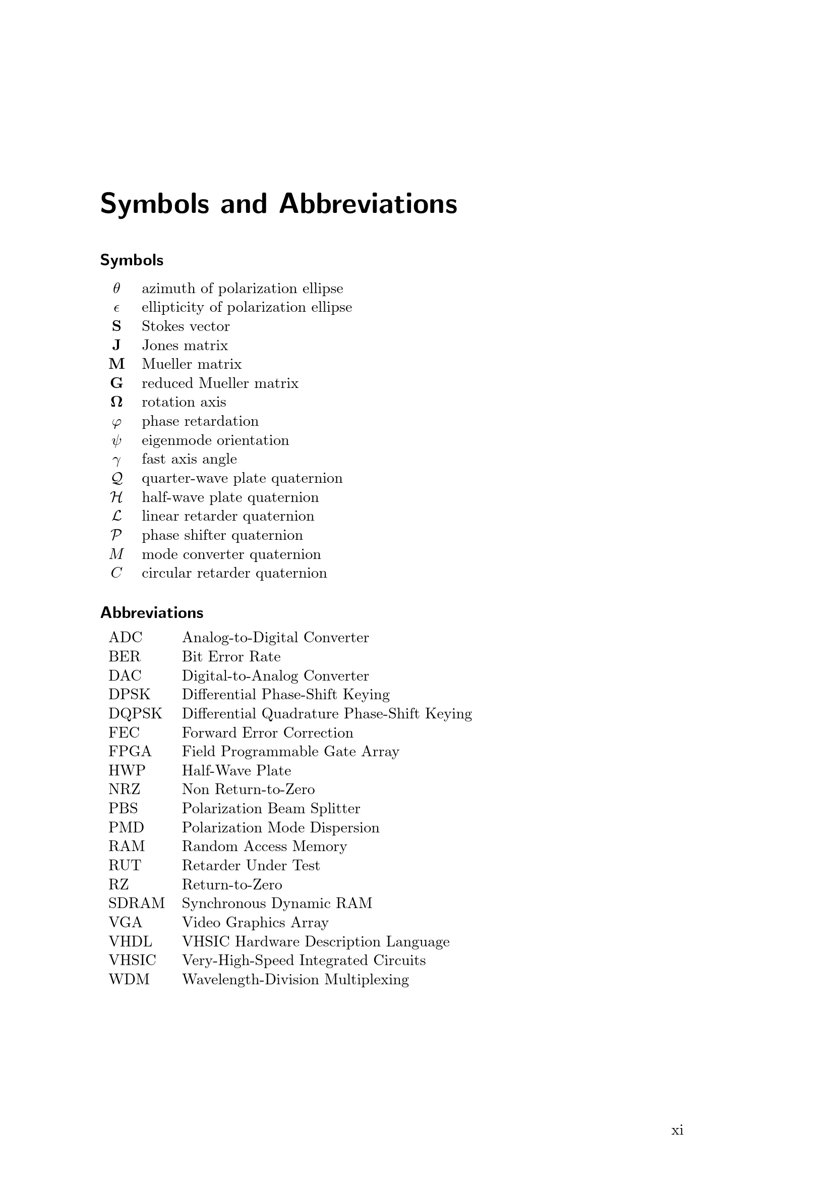 Symbols and Abbreviations