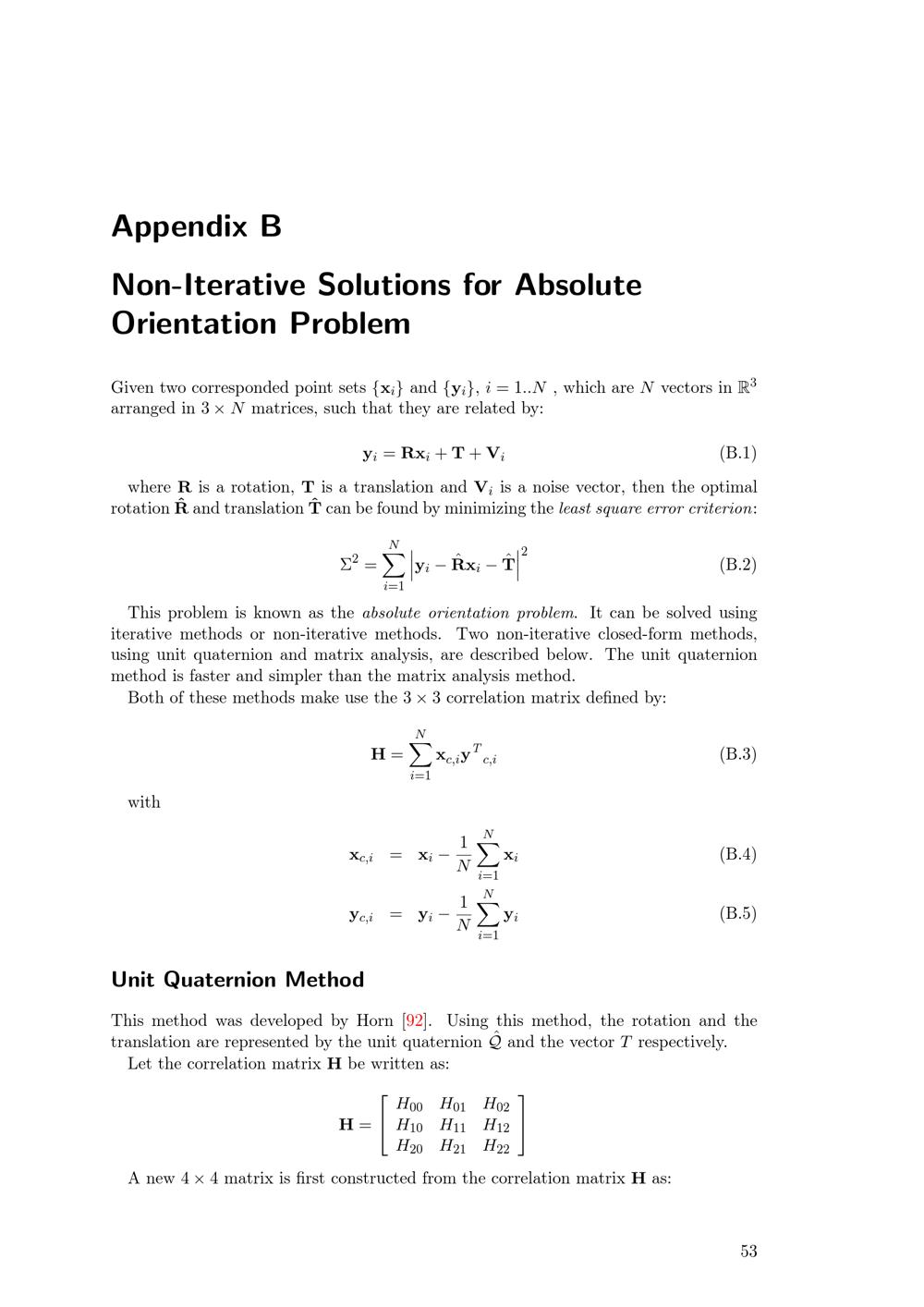 B Non-Iterative Solutions for Absolute Orientation Problem