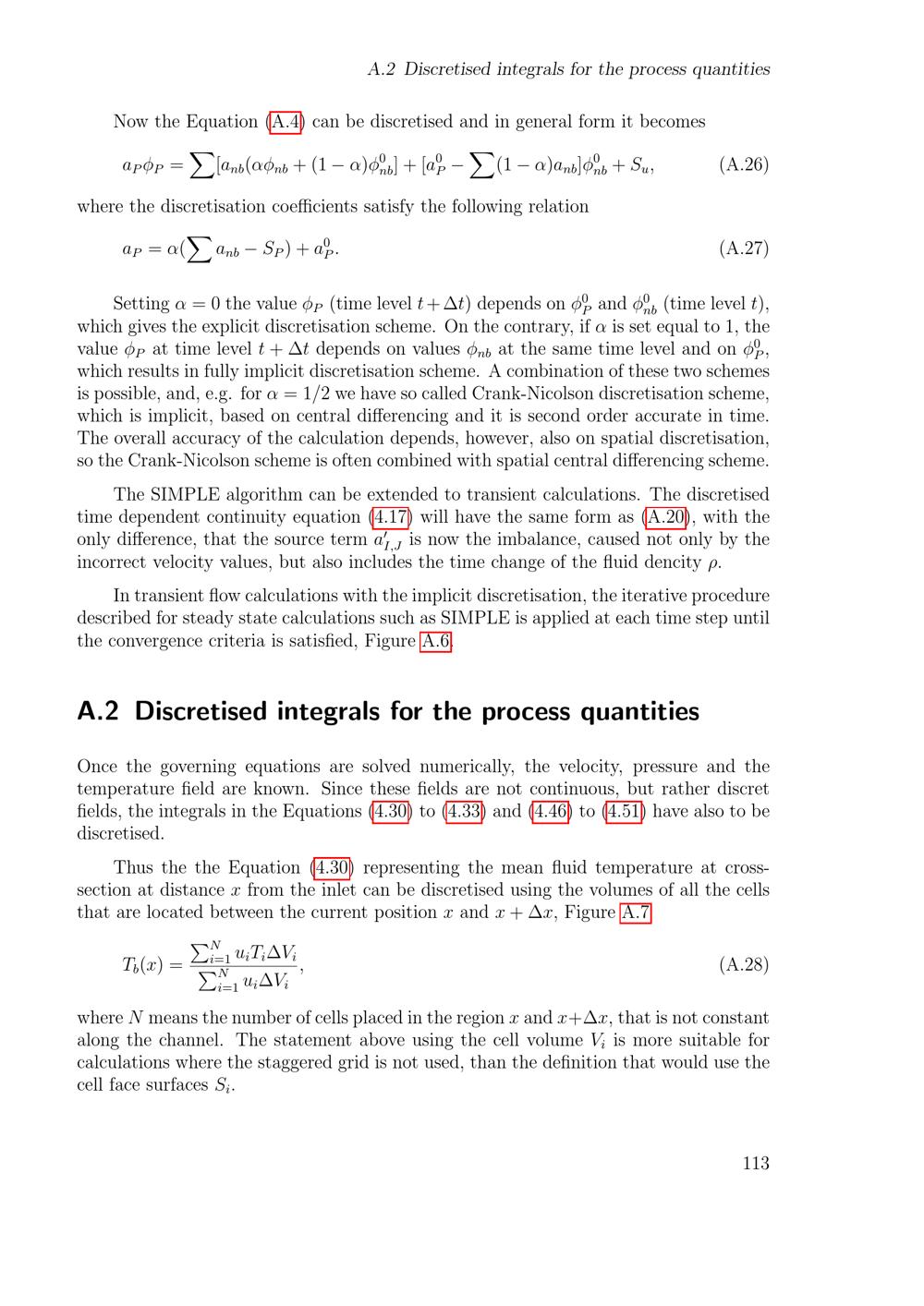 Discretised integrals for the process quantities