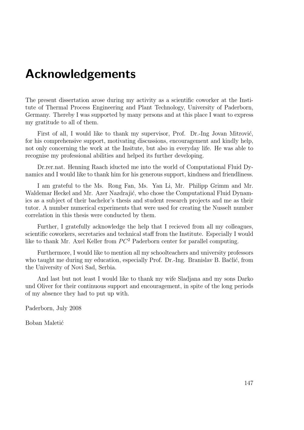 Modelling and numerical simulation of fluid flow and heat transfer in thermoplates / Boban Maletić