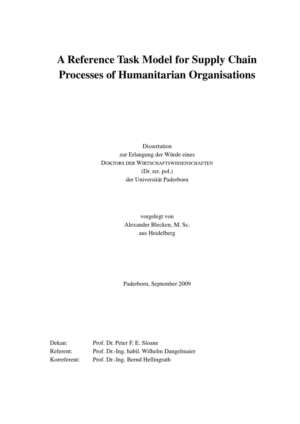 A reference task model for supply chain processes of humanitarian organisations / Alexander Blecken