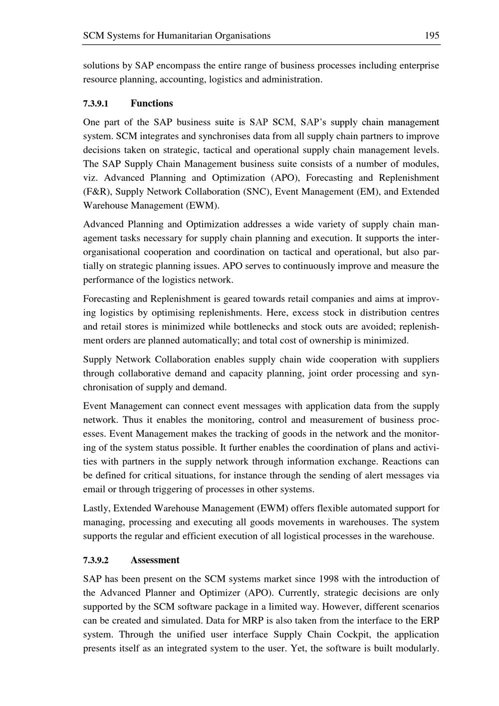 Assessment of SCM Systems