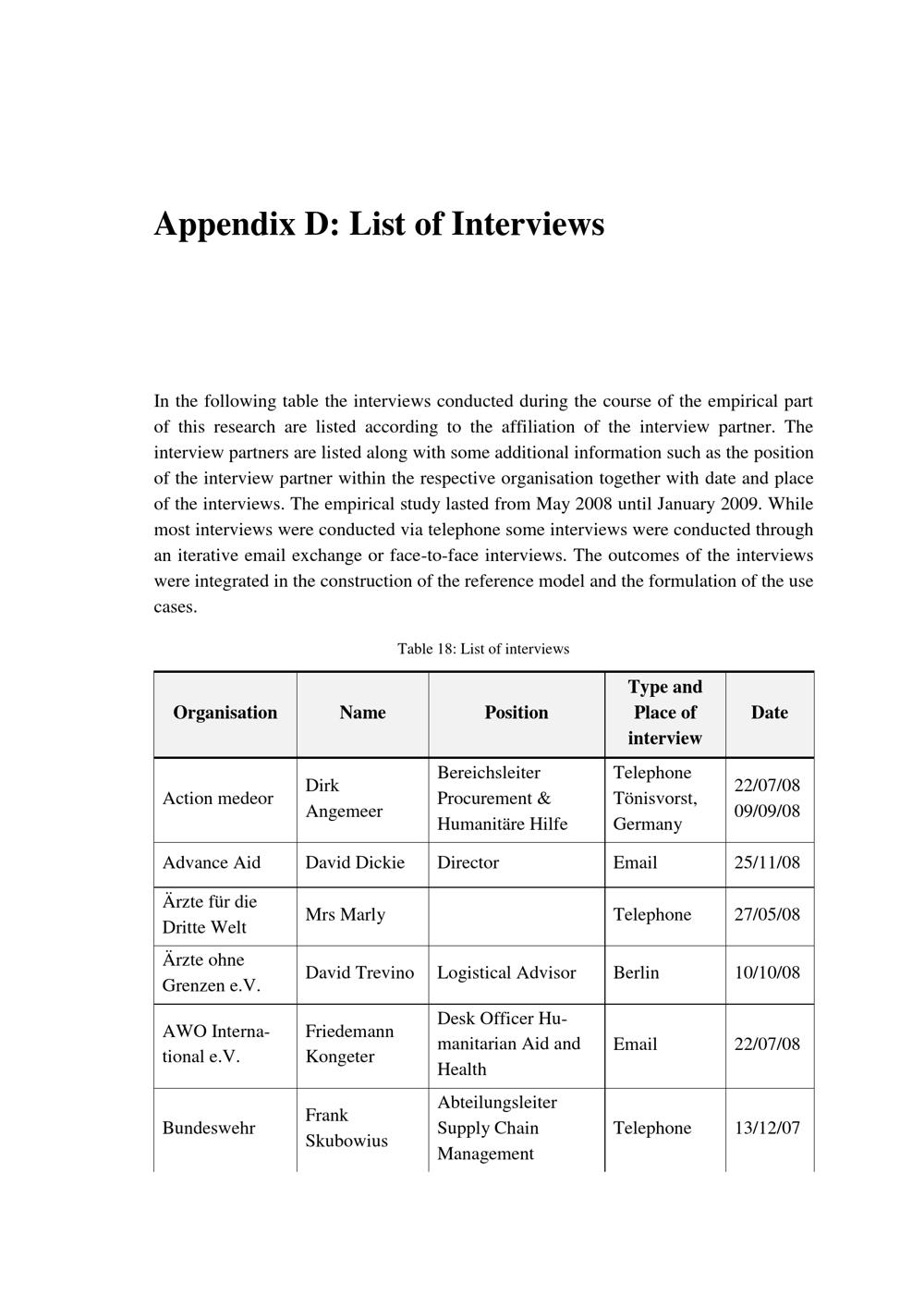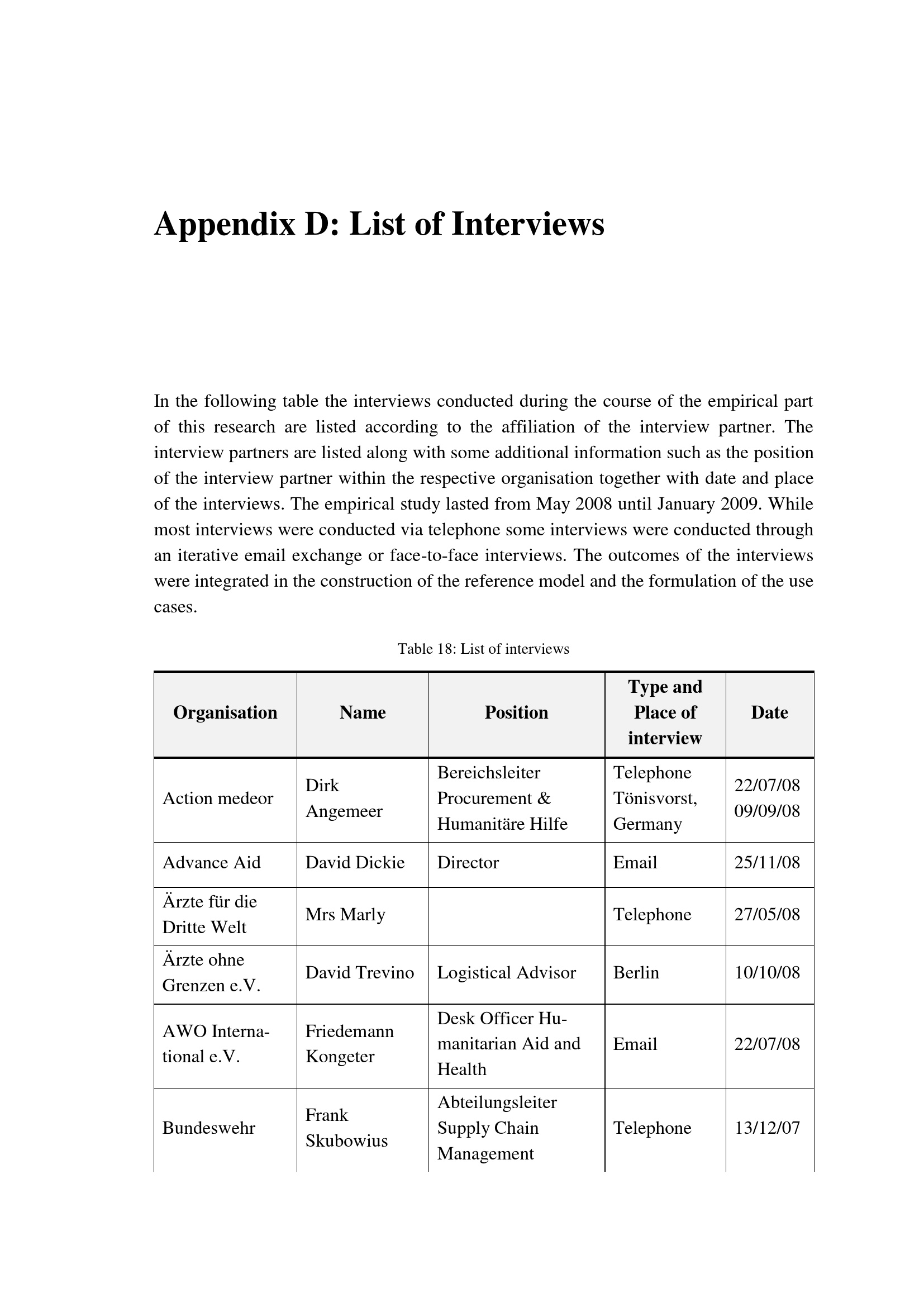 Appendix D: List of Interviews