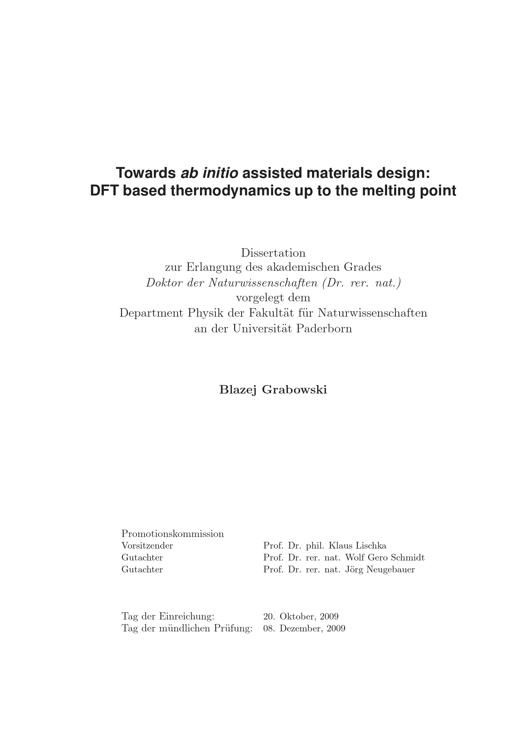 Towards ab initio assisted materials design : DFT based thermodynamics up to the melting point / Blazej Grabowski