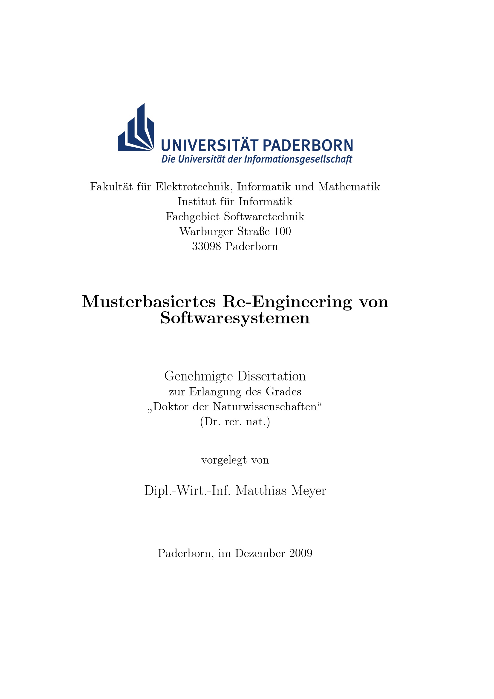 Musterbasiertes Re-Engineering von Softwaresystemen / Matthias Meyer