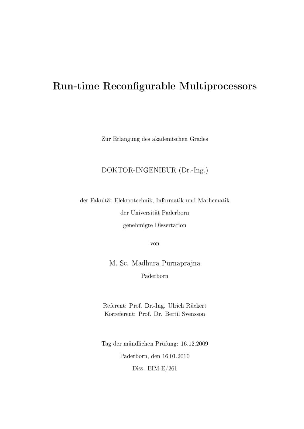 Run-time reconfigurable multiprocessors / Madhura Purnaprajna