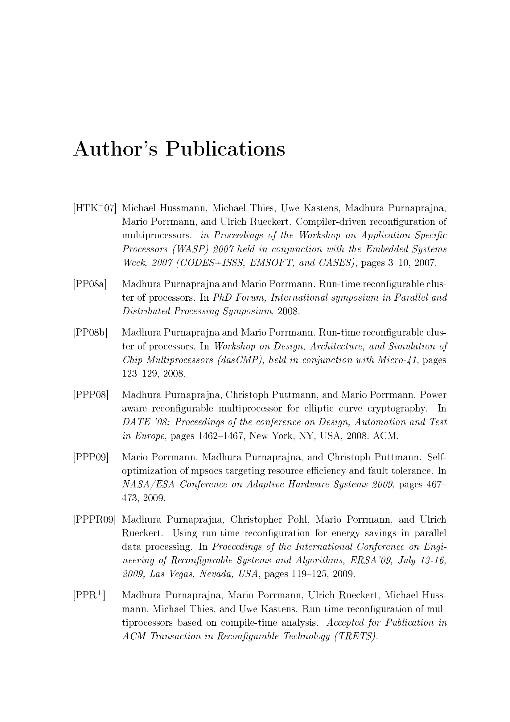 Run-time reconfigurable multiprocessors / Madhura Purnaprajna