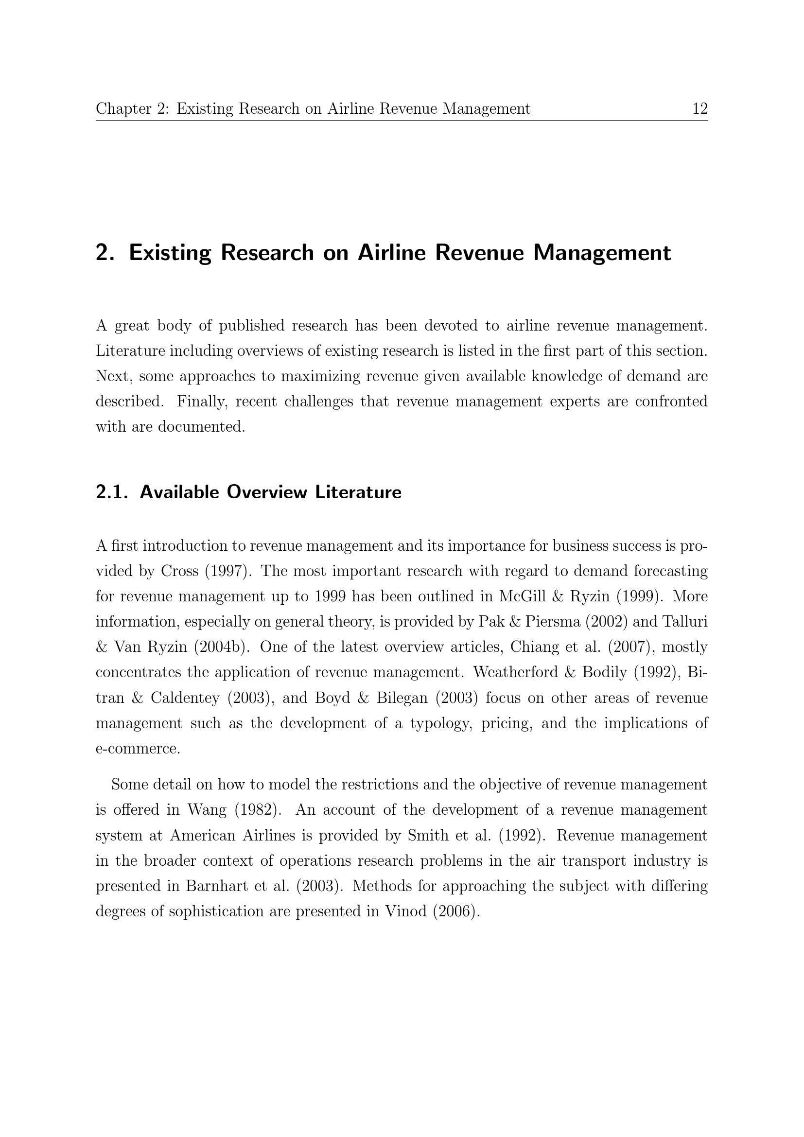 Existing Research on Airline Revenue Management