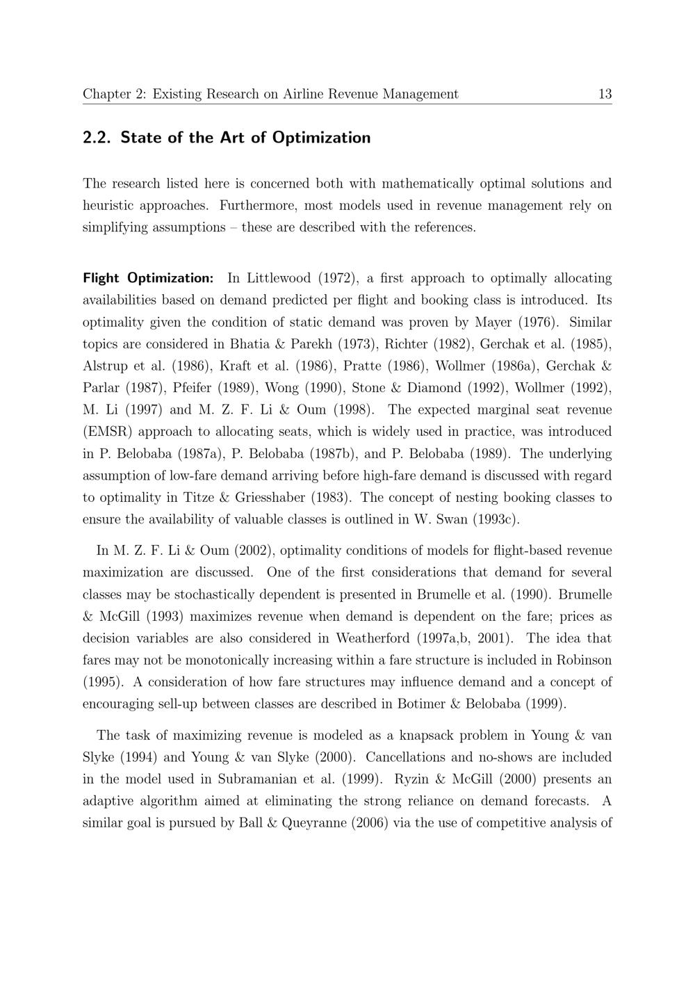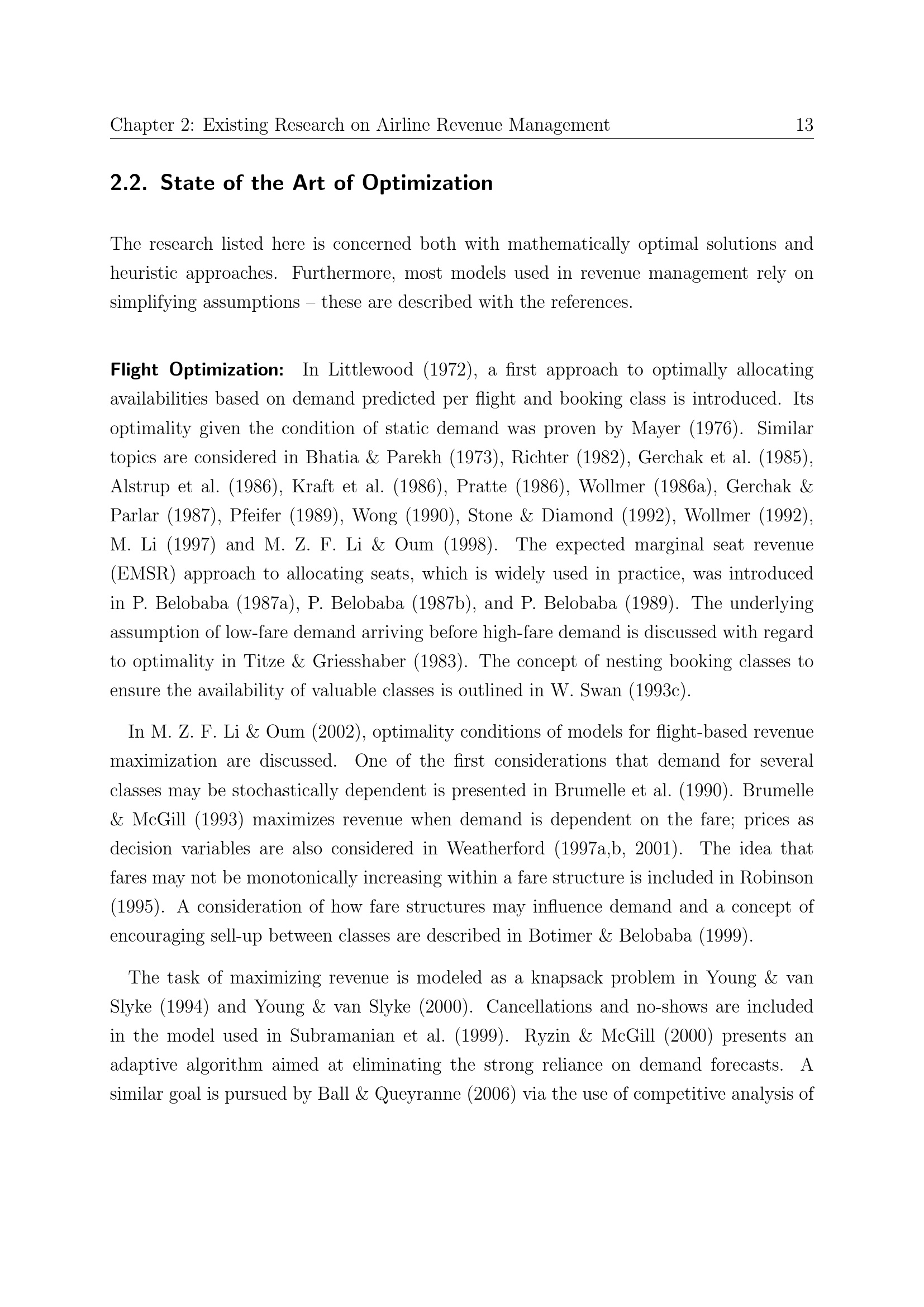 Existing Research on Airline Revenue Management