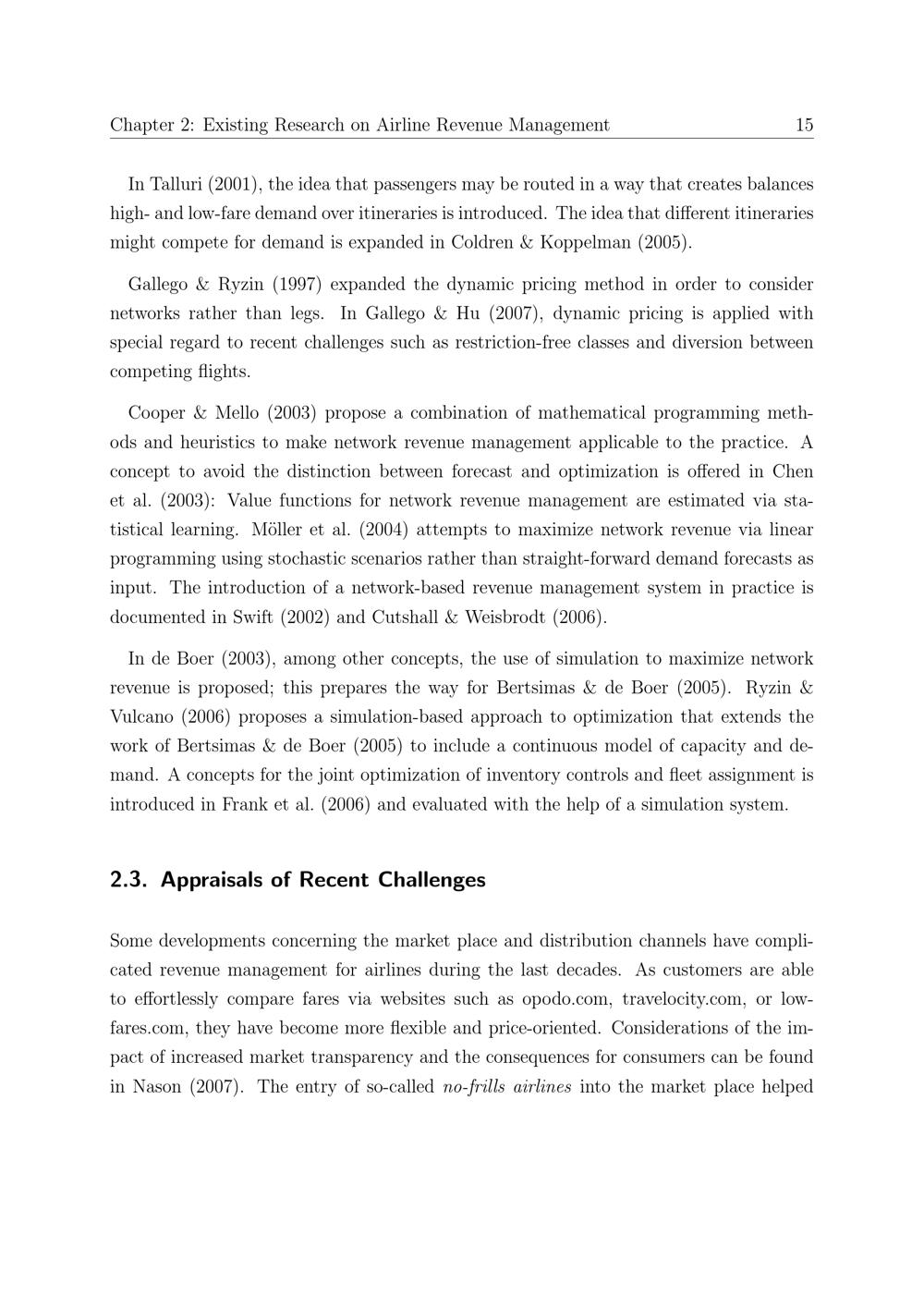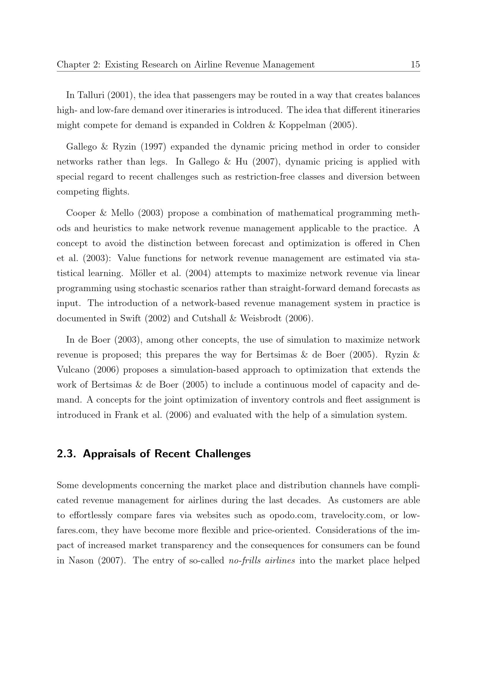 Existing Research on Airline Revenue Management