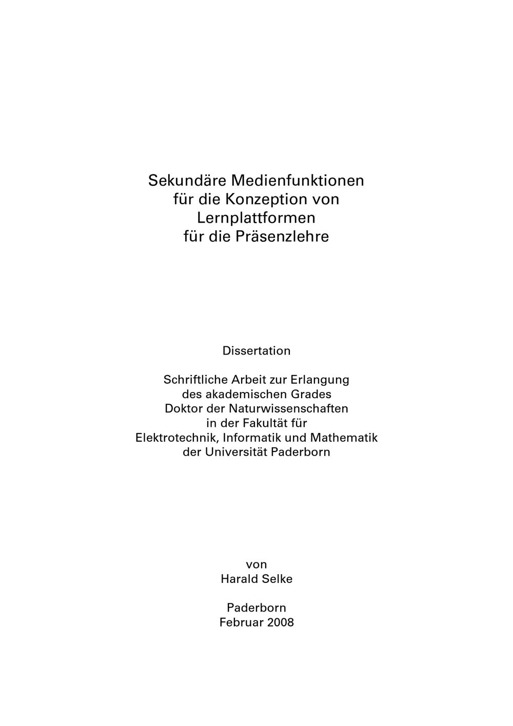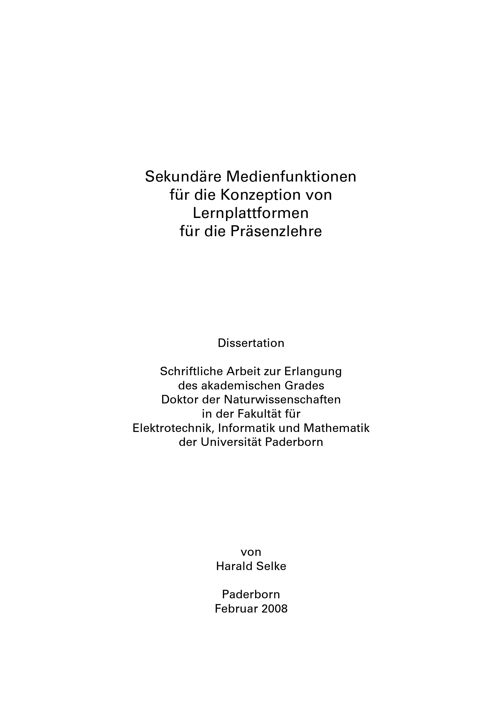 Sekundäre Medienfunktionen für die Konzeption von Lernplattformen für die Präsenzlehre / Harald Selke