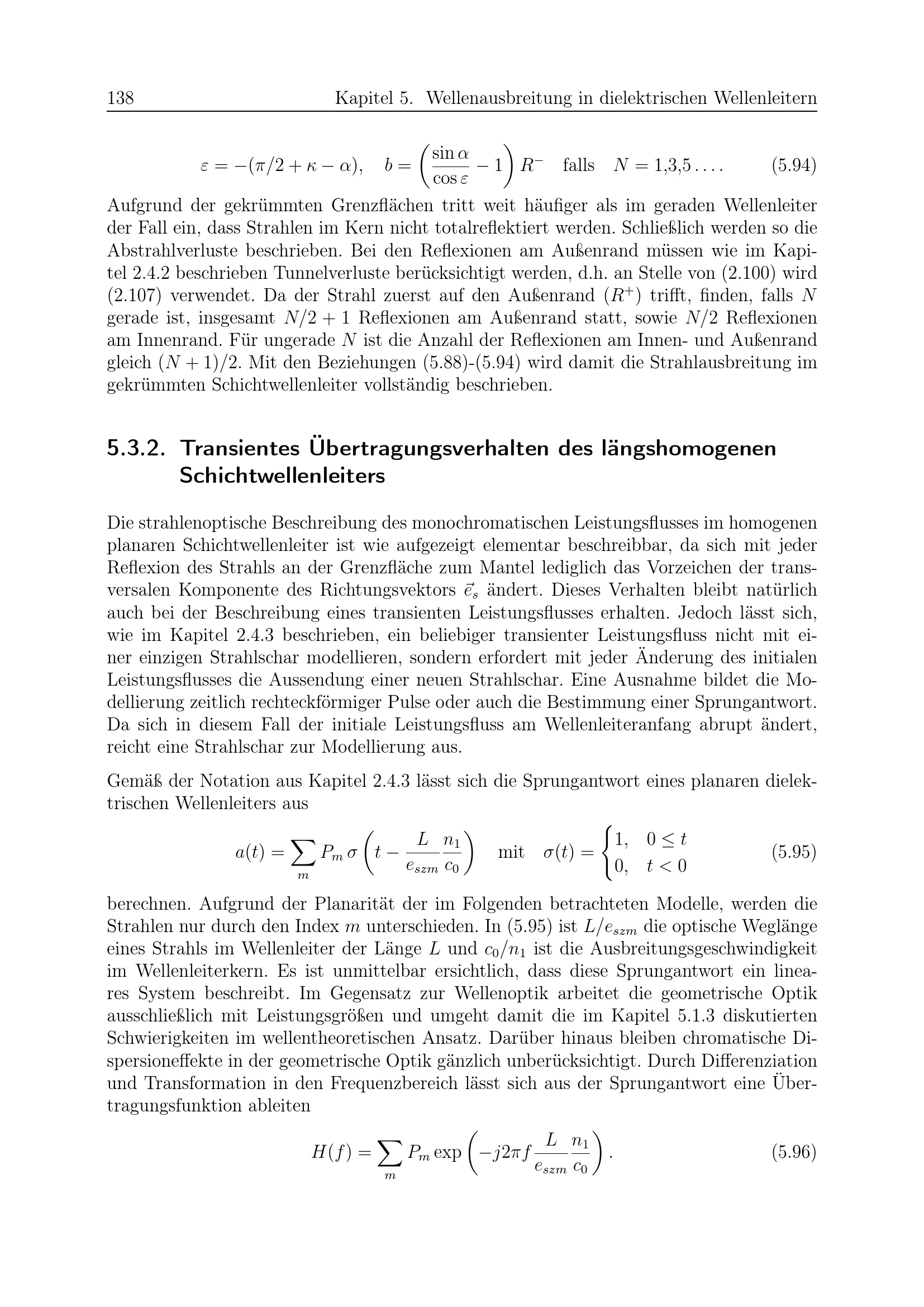 5.3.2 Transientes Übertragungsverhalten des längshomogenen Schichtwellenleiters