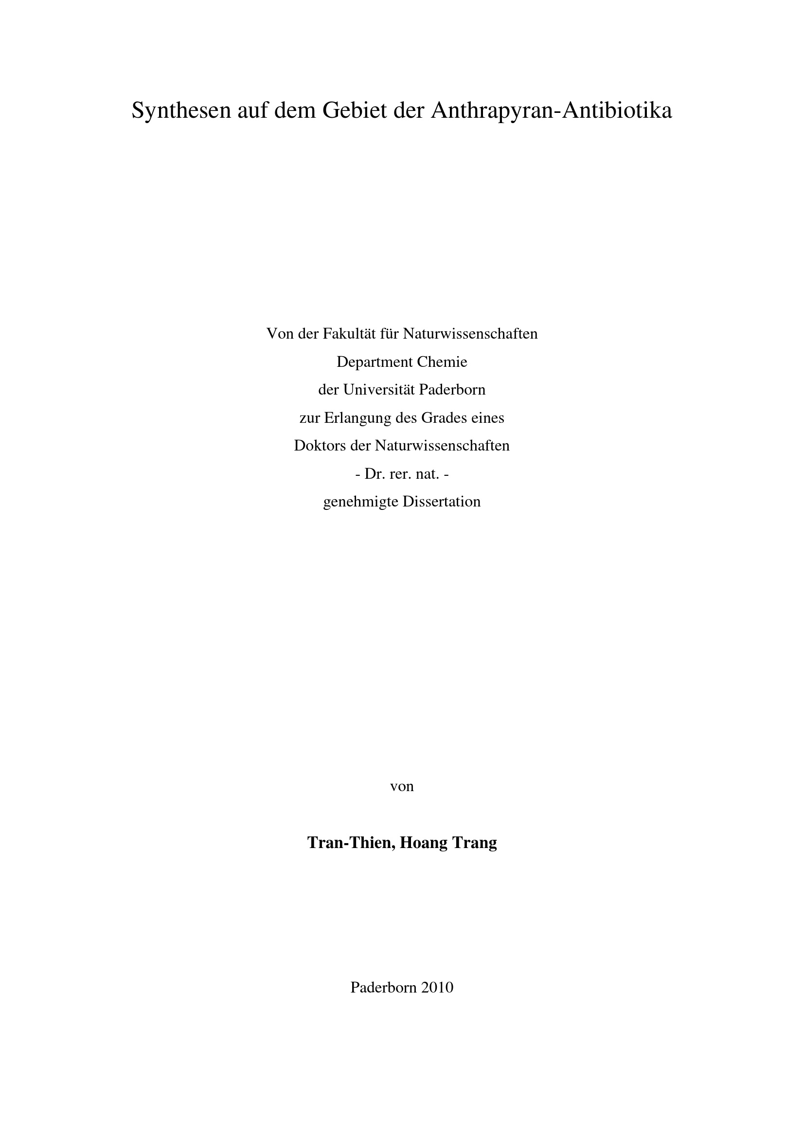 Synthesen auf dem Gebiet der Anthrapyran-Antibiotika / Hoang Trang Tran-Thien