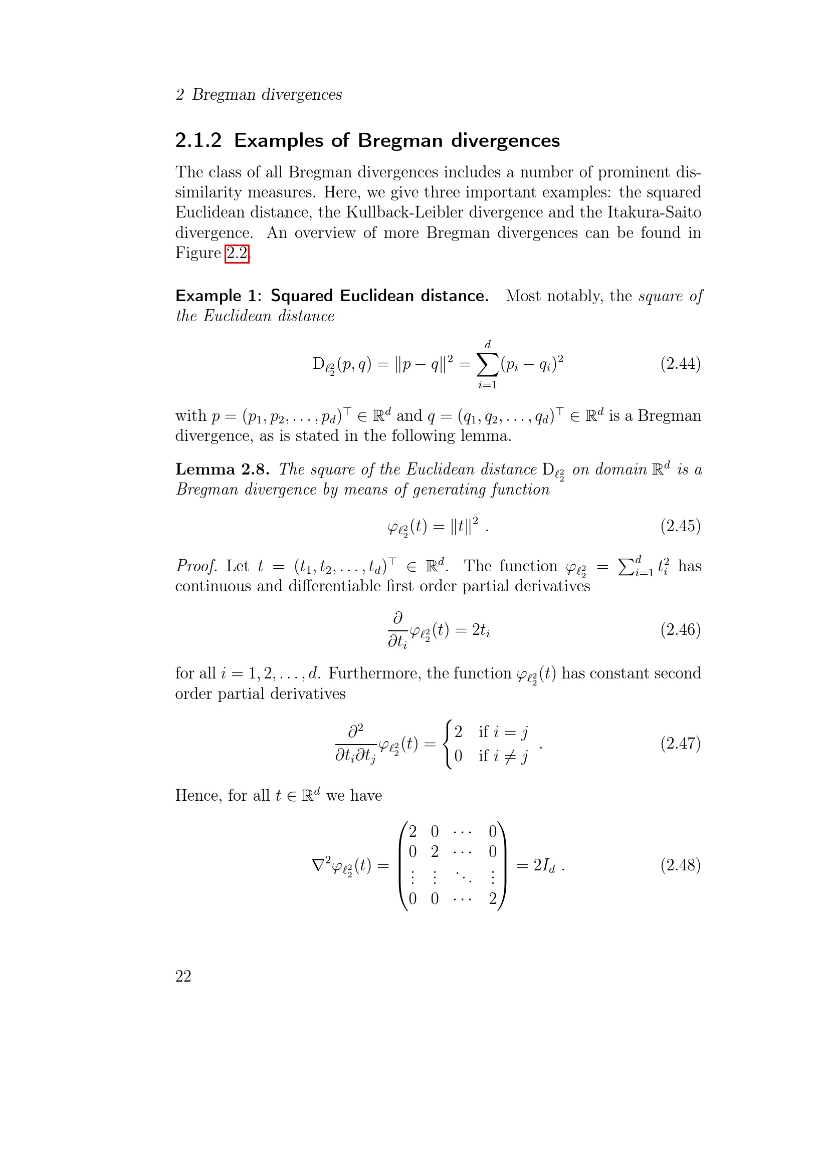 2.1.2 Examples of Bregman divergences