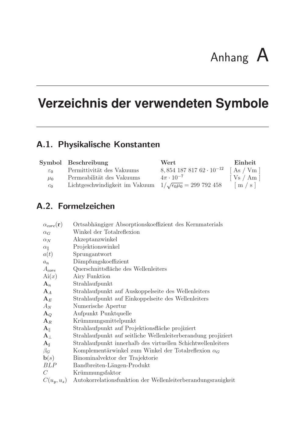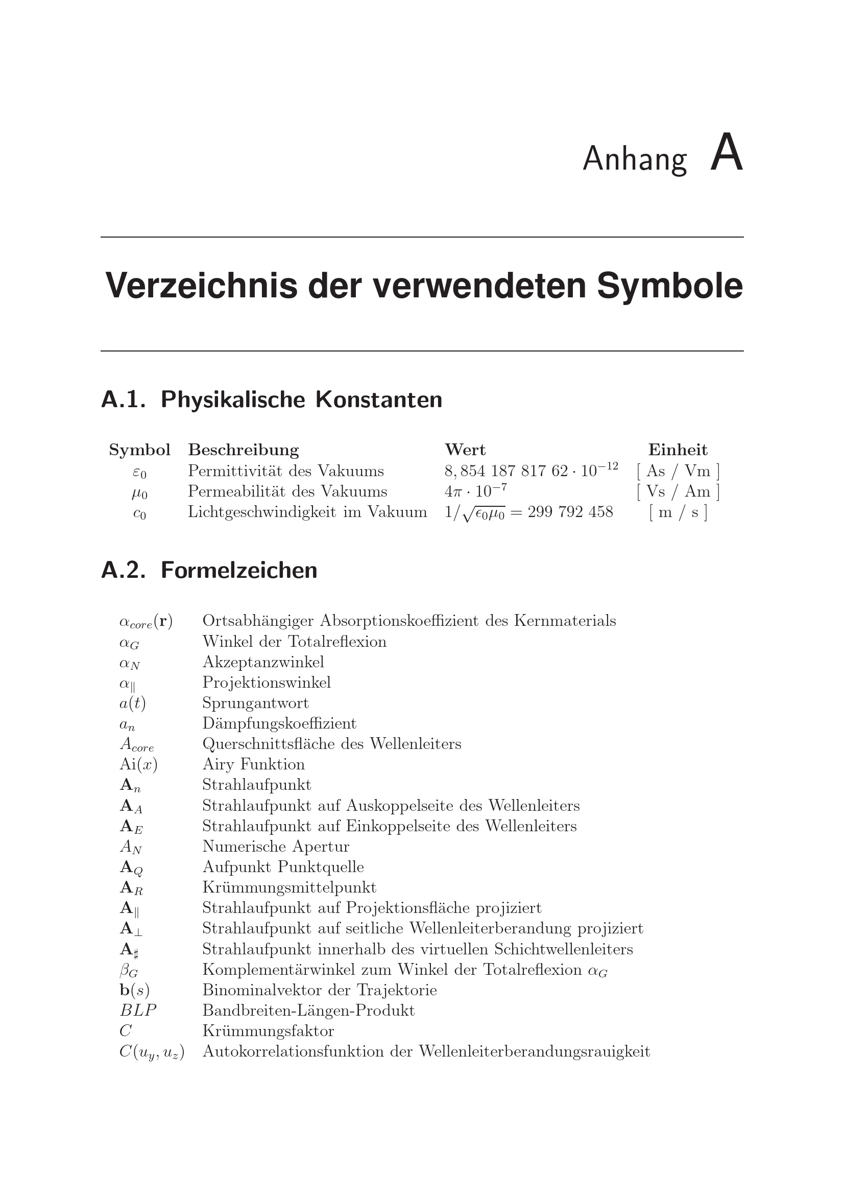 Verzeichnis der verwendeten Symbole