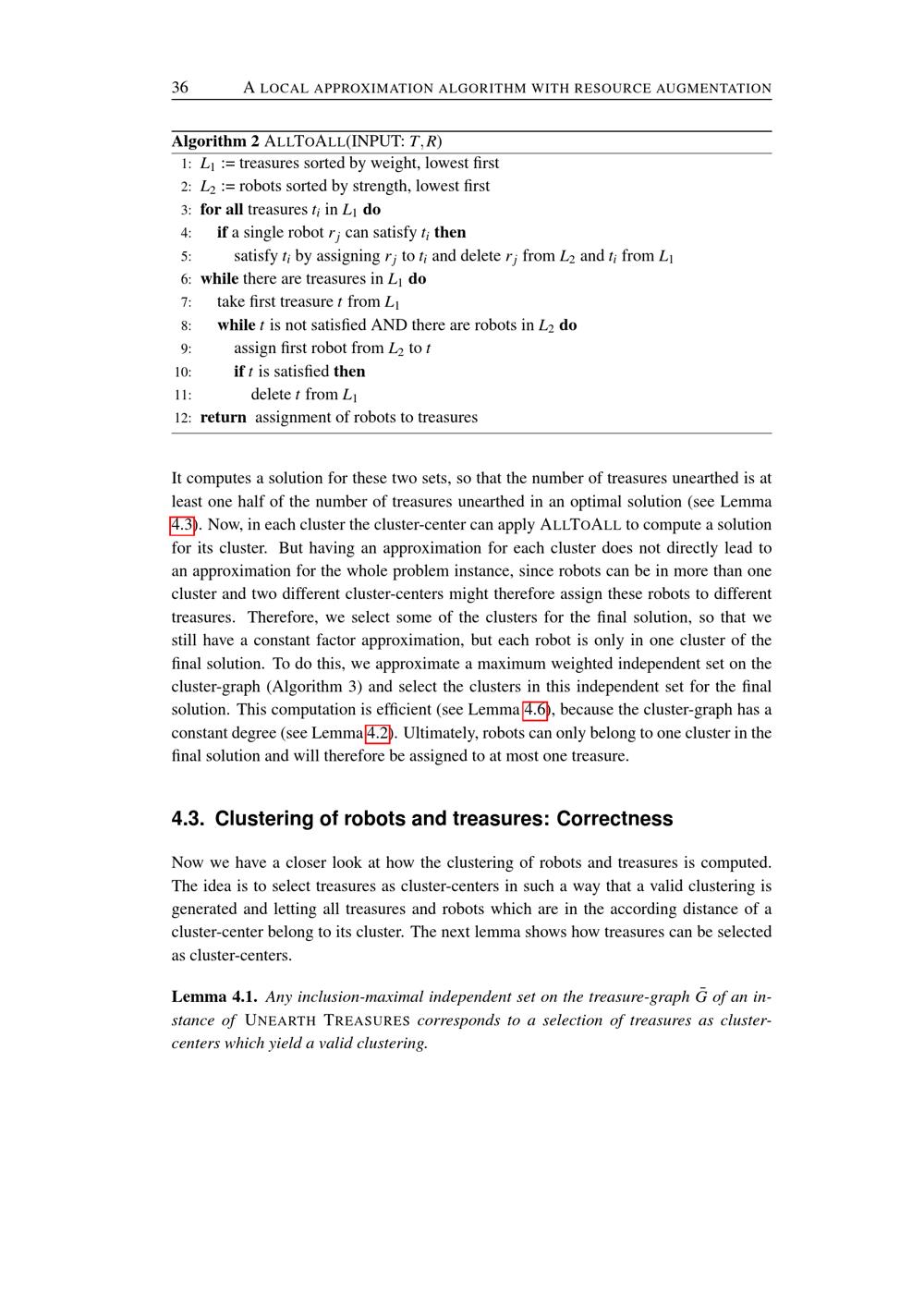 Clustering of robots and treasures: Correctness