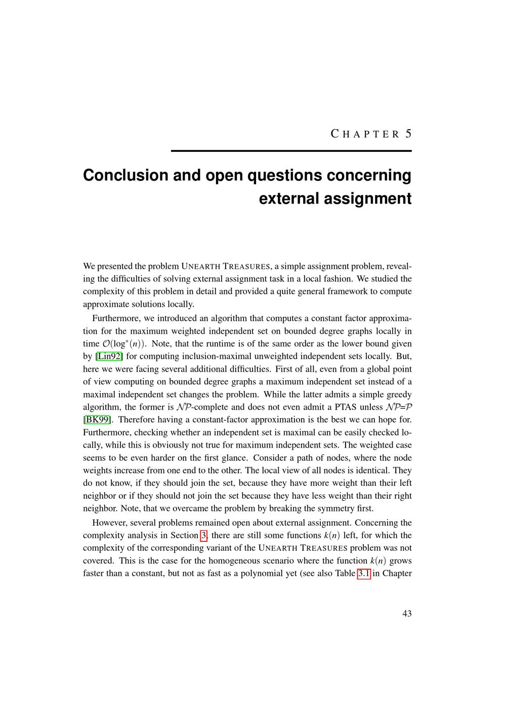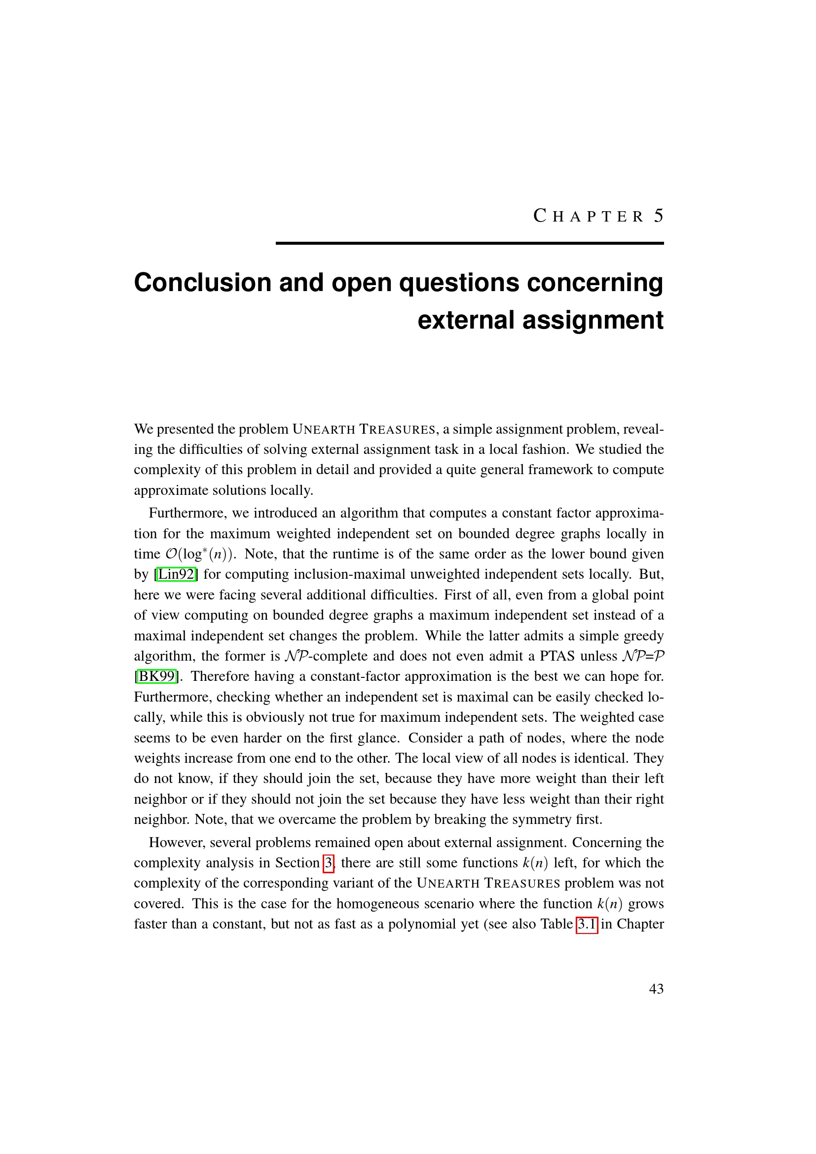 Conclusion and open questions concerning external assignment