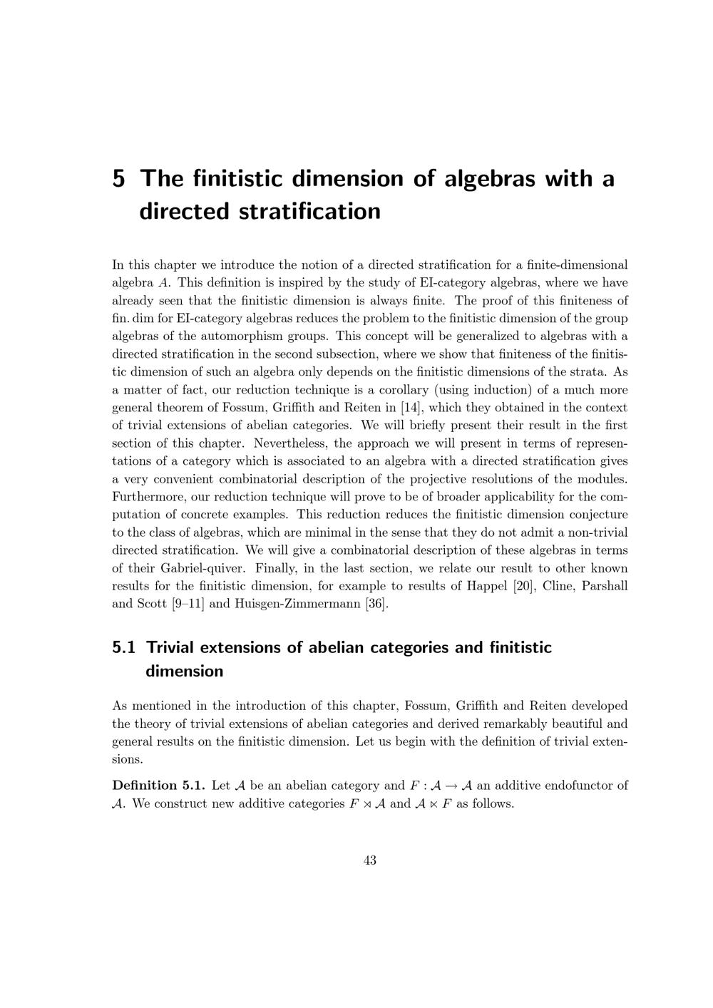 5.1 Trivial extensions of abelian categories and finitistic dimension