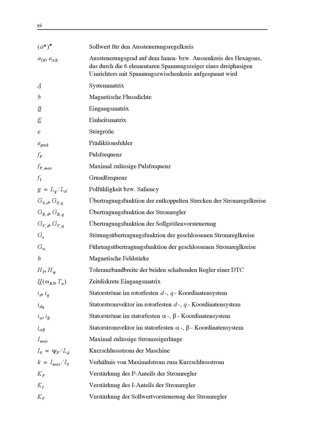 Verzeichnis verwendeter Formelzeichen und Abkürzungen