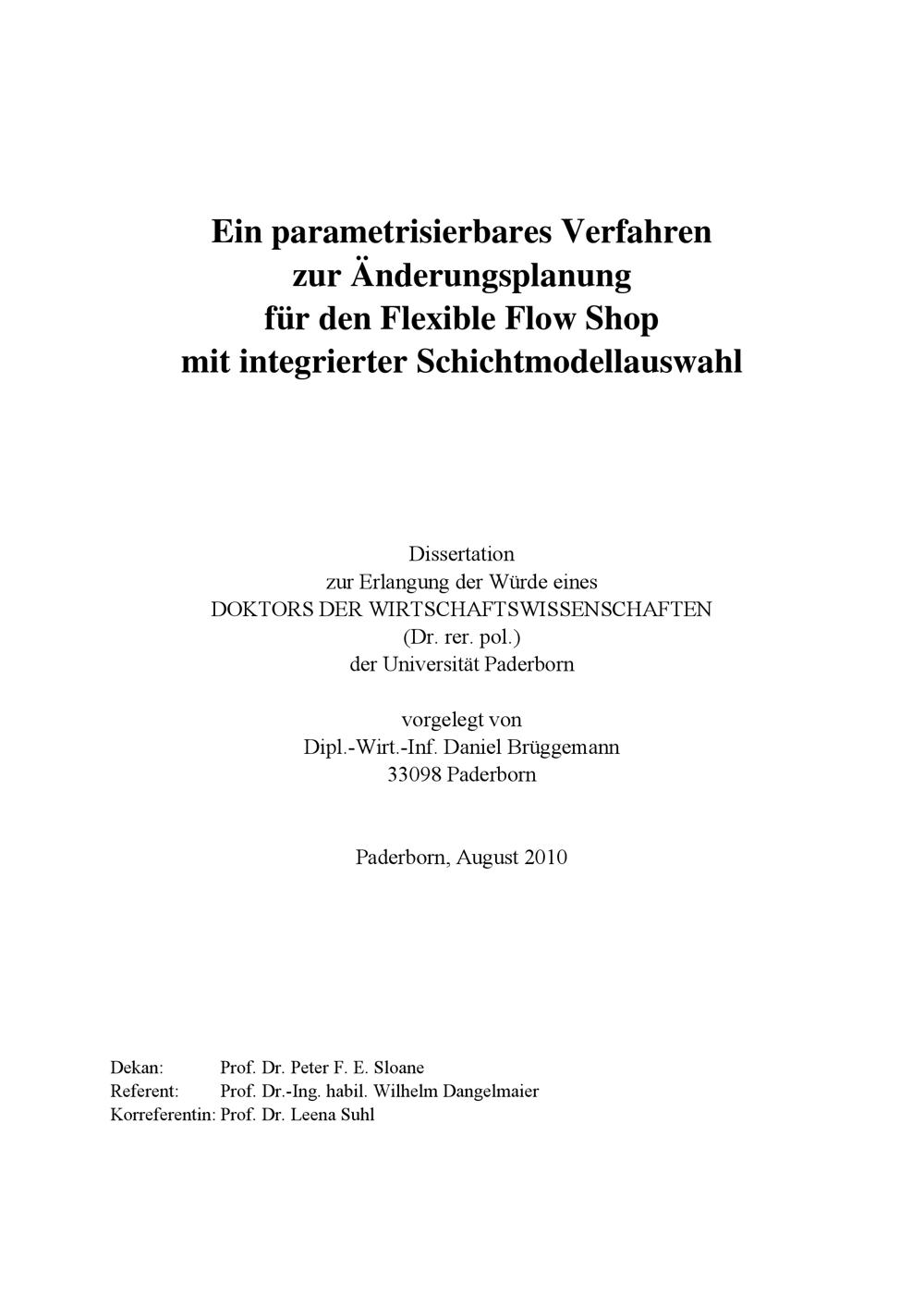 Ein parametrisierbares Verfahren zur Änderungsplanung für den Flexible Flow Shop mit integrierter Schichtmodellauswahl / Daniel Brüggemann