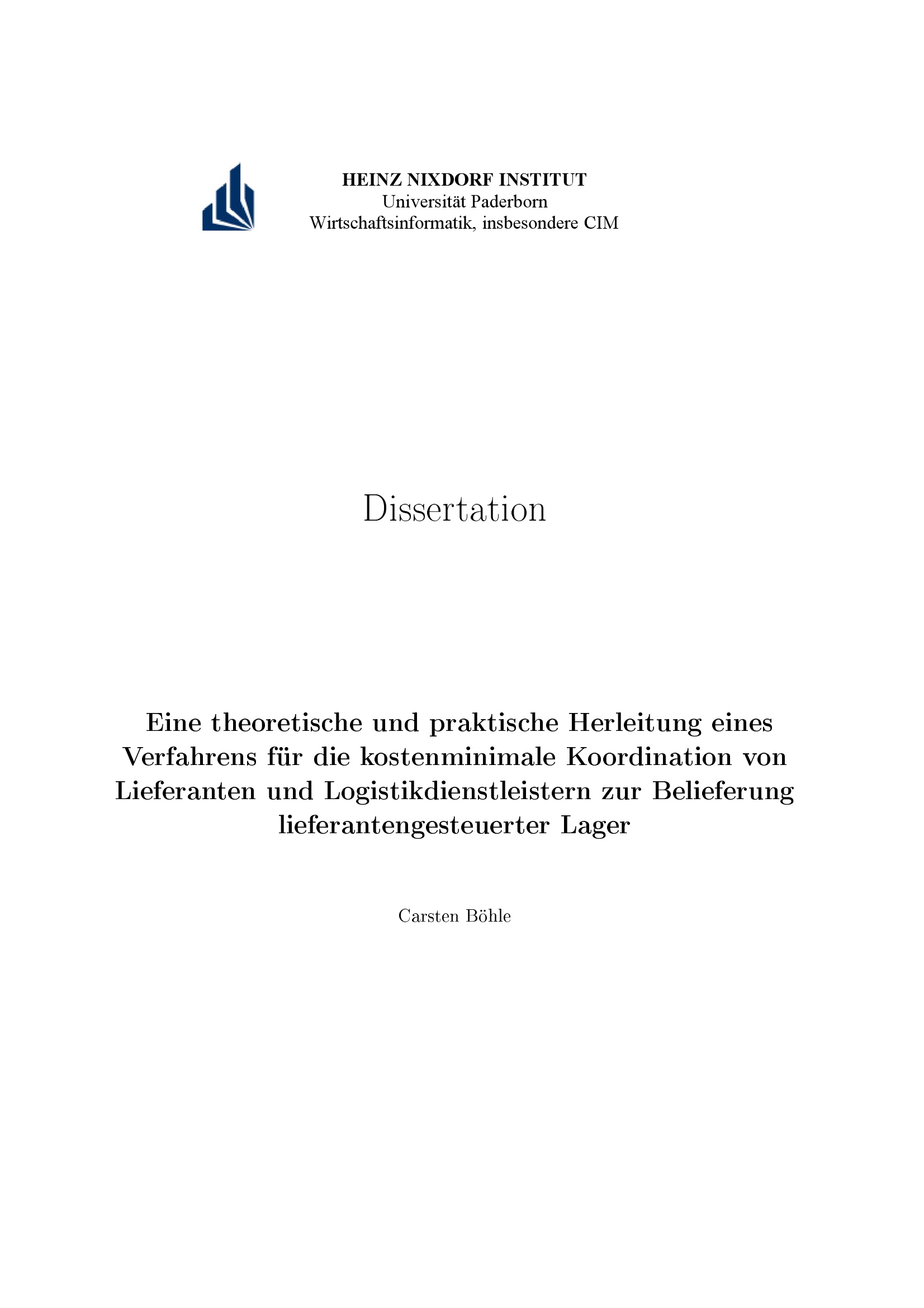 Eine theoretische und praktische Herleitung eines Verfahrens für die kostenminimale Koordination von Lieferanten und Logistikdienstleistern zur Belieferung lieferantengesteuerter Lager / Carsten Böhle
