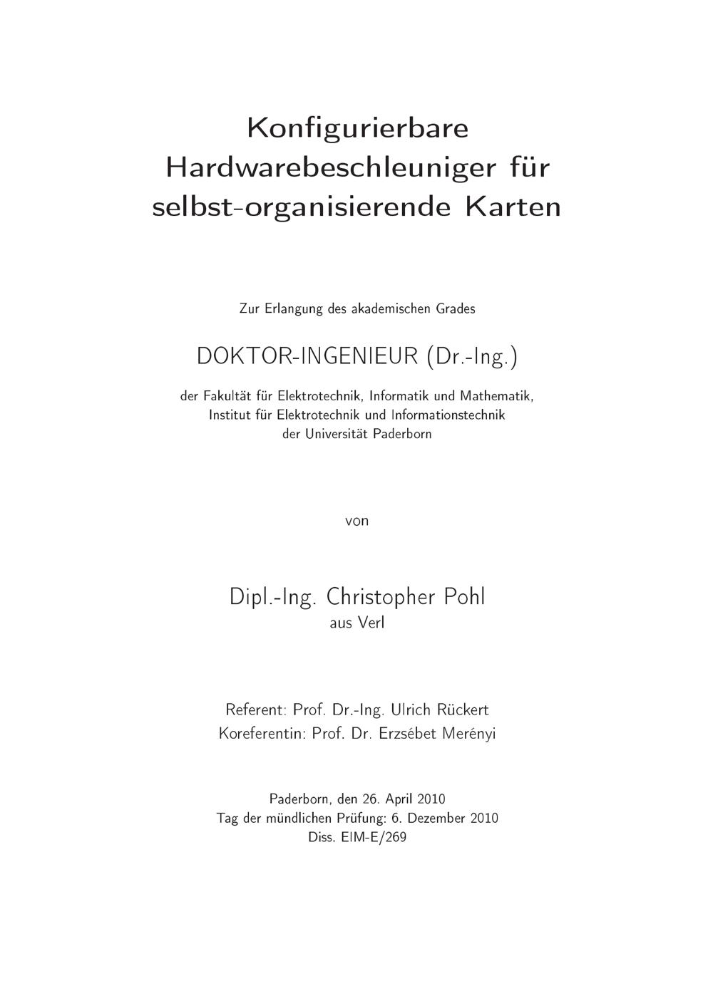 Konfigurierbare Hardwarebeschleuniger für selbst-organisierende Karten / Christopher Pohl