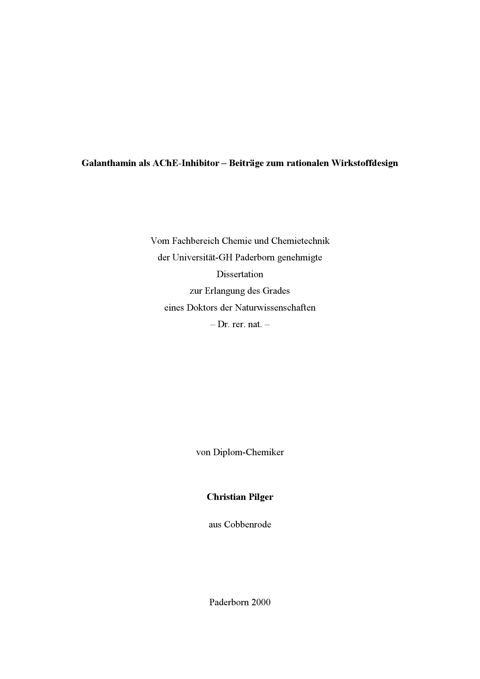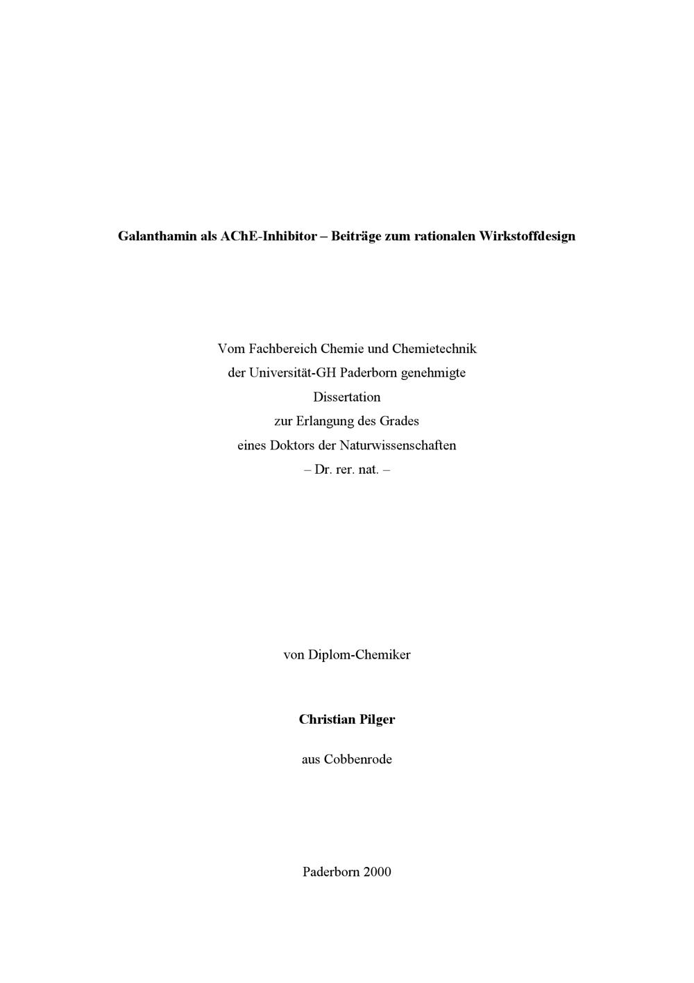 Galanthamin als AChE-Inhibitor : Beiträge zum rationalen Wirkstoffdesign / von Christian Pilger