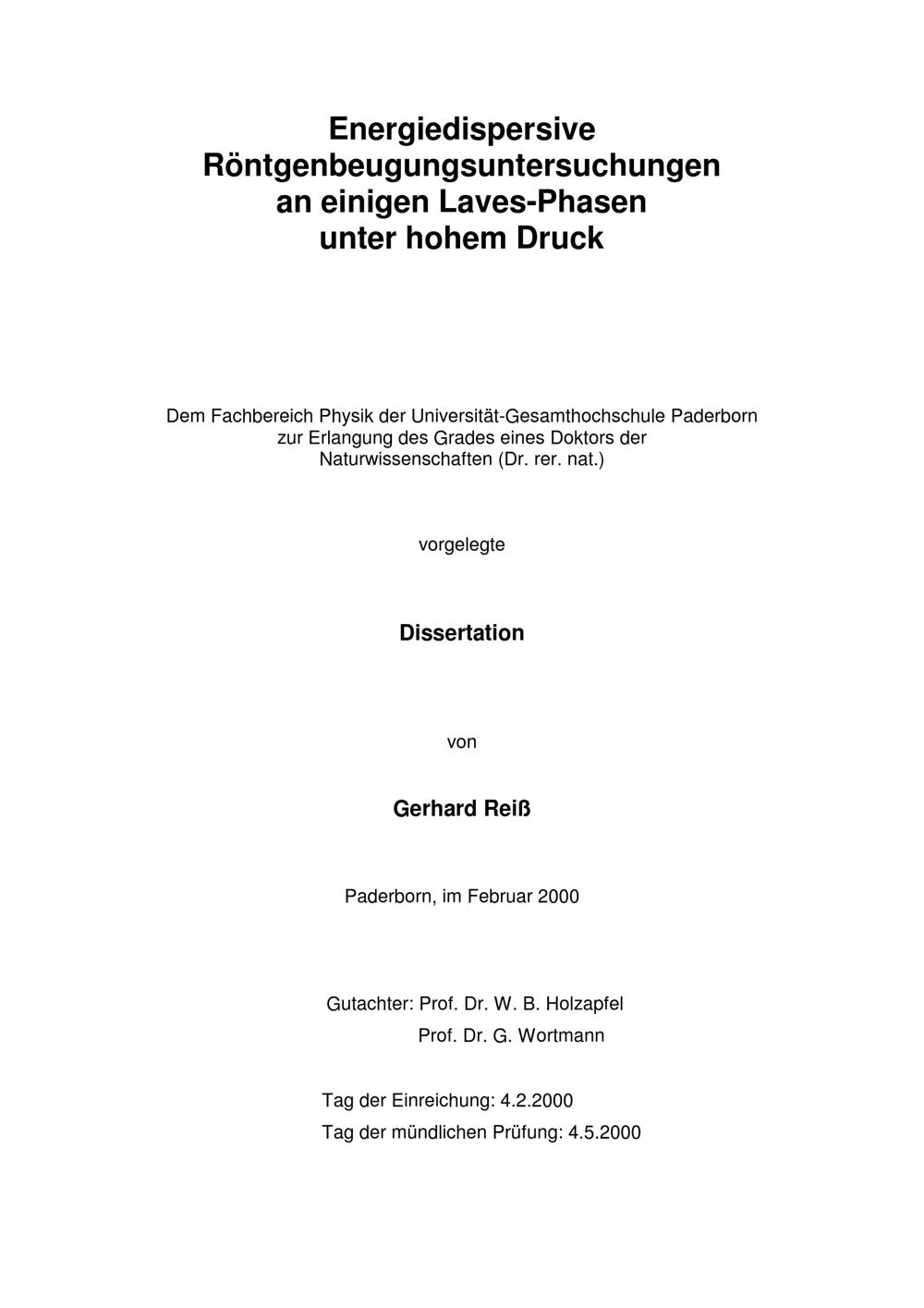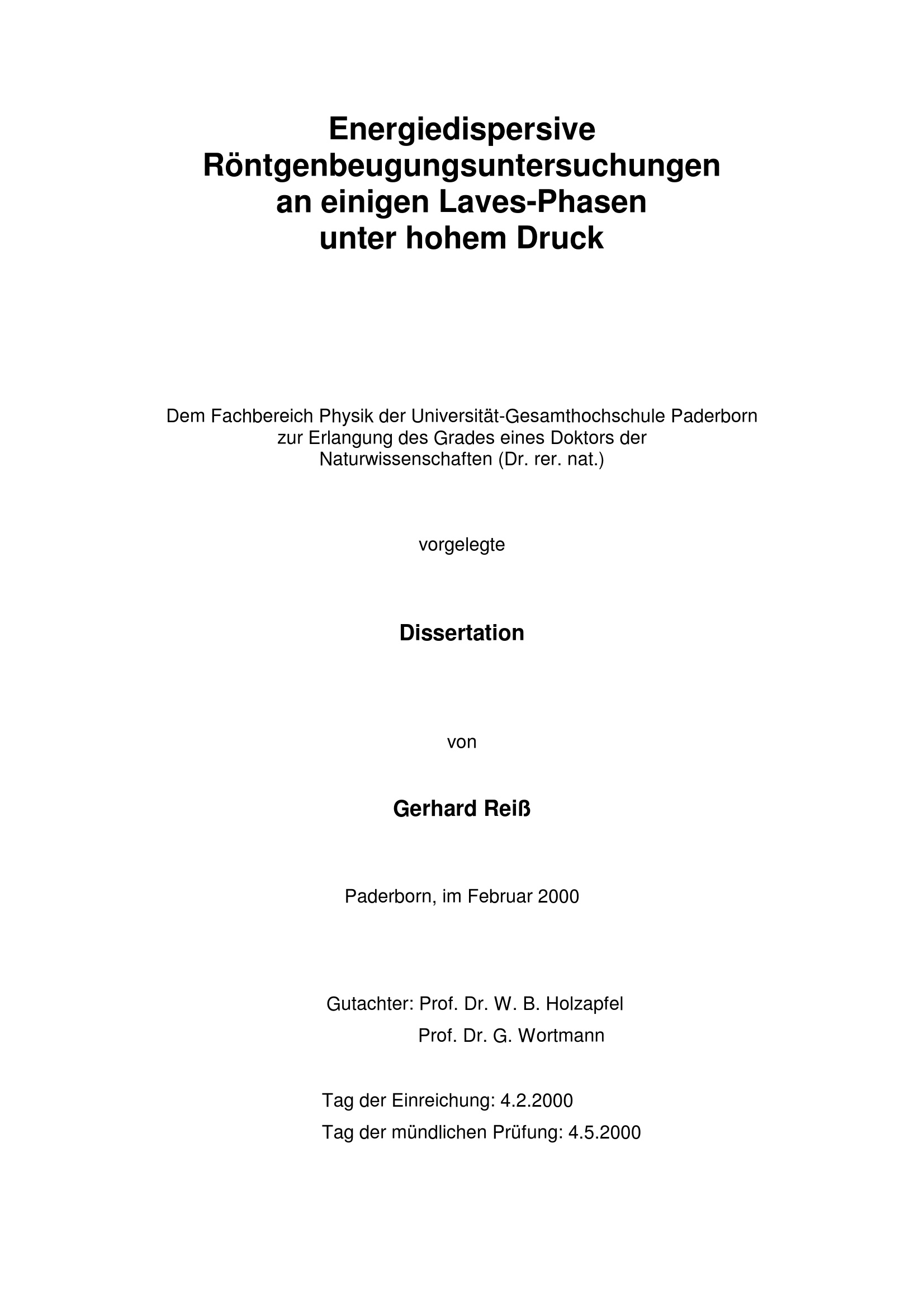 Energiedispersive Röntgenbeugungsuntersuchungen an einigen Laves-Phasen unter hohem Druck / von Gerhard Reiß