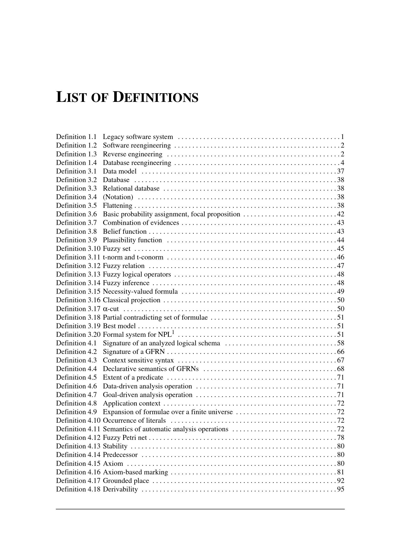 List of Definitions