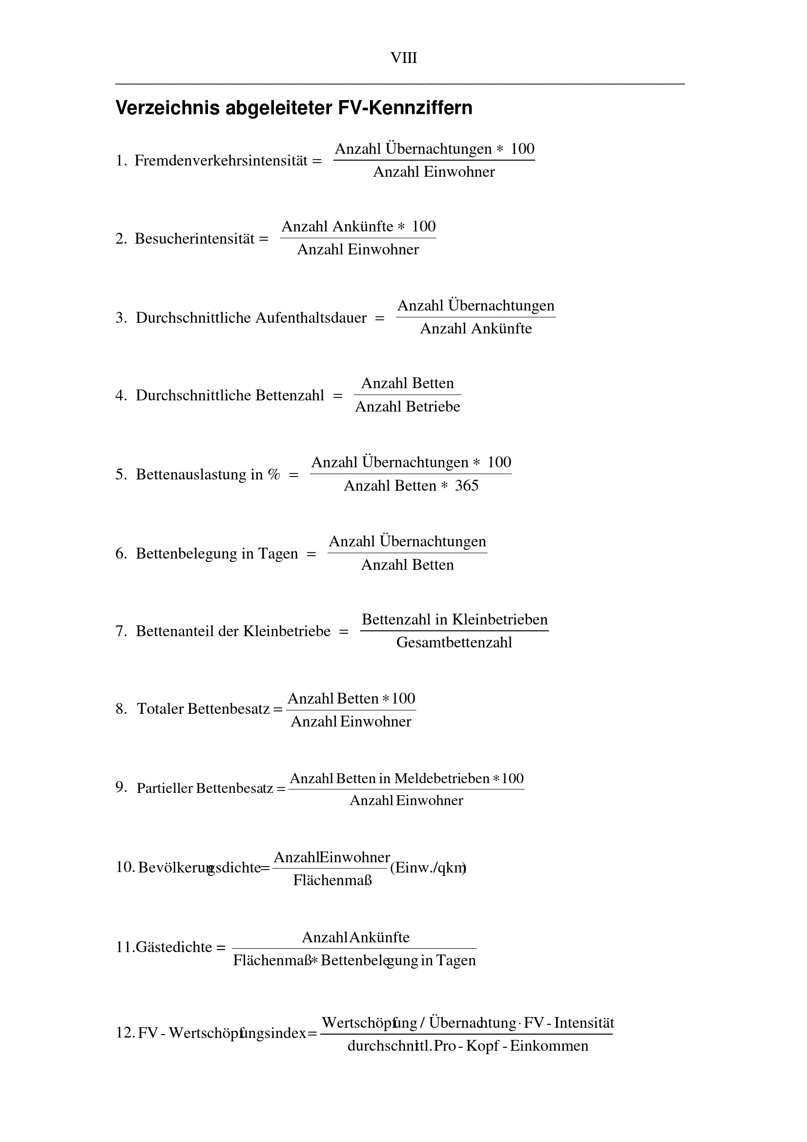Verzeichnis abgeleiteter FV-Kennziffern