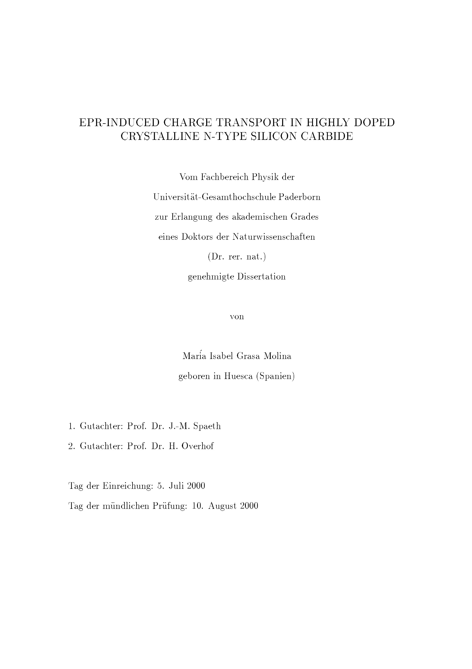 EPR-induced charge transport in highly doped crystalline n-type silicon carbide / von María Isabel Grasa Molina