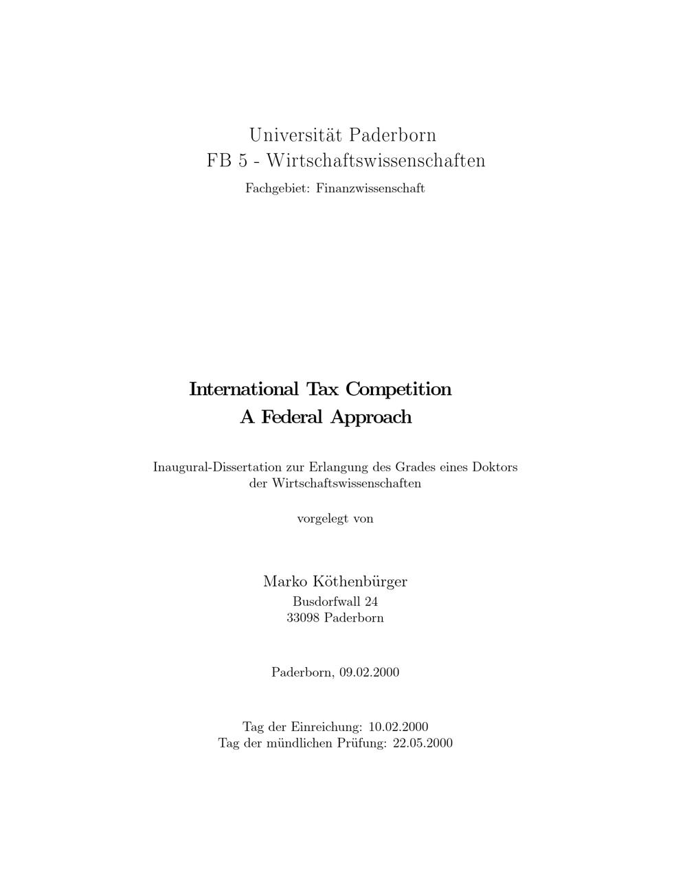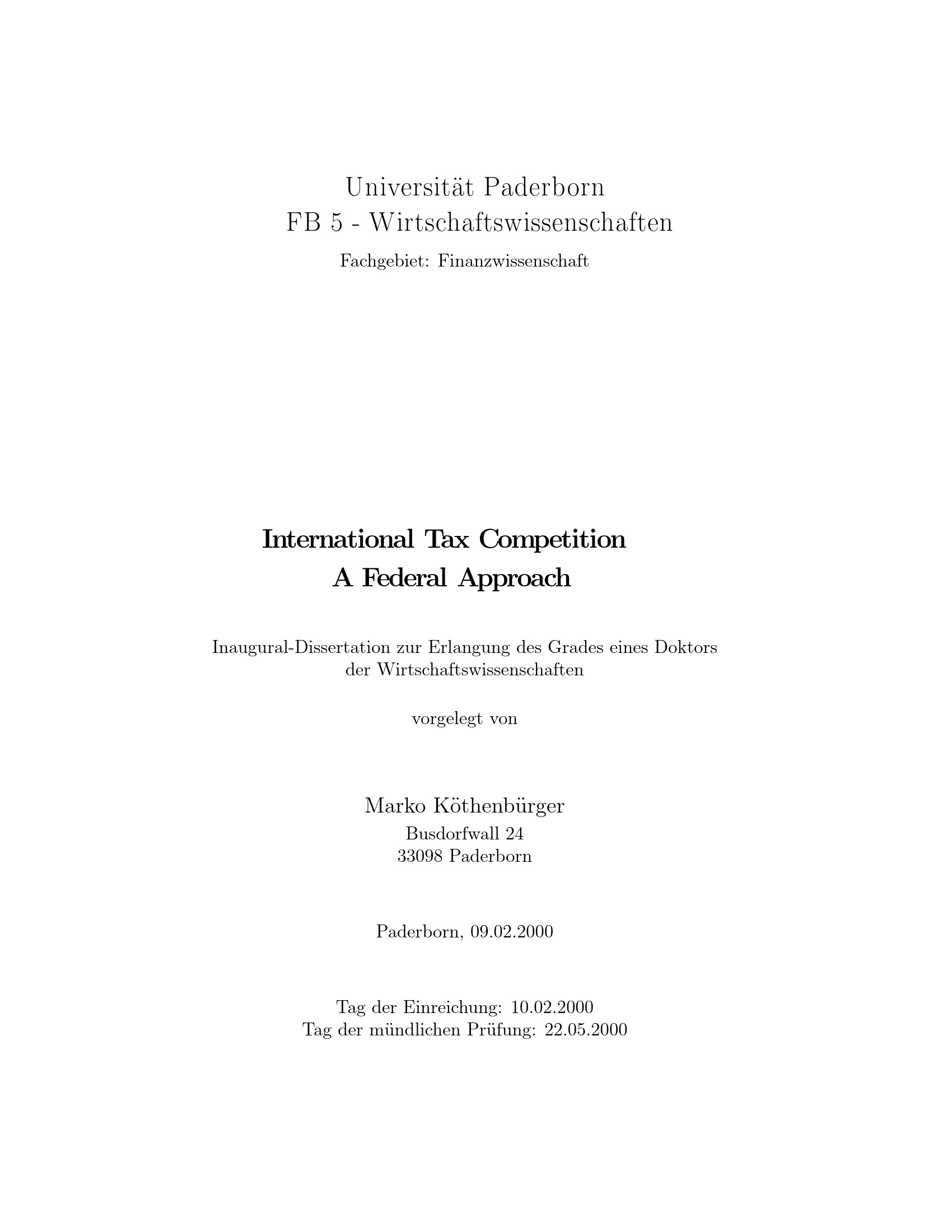 International tax competition : a federal approach / vorgelegt von Marko Köthenbürger