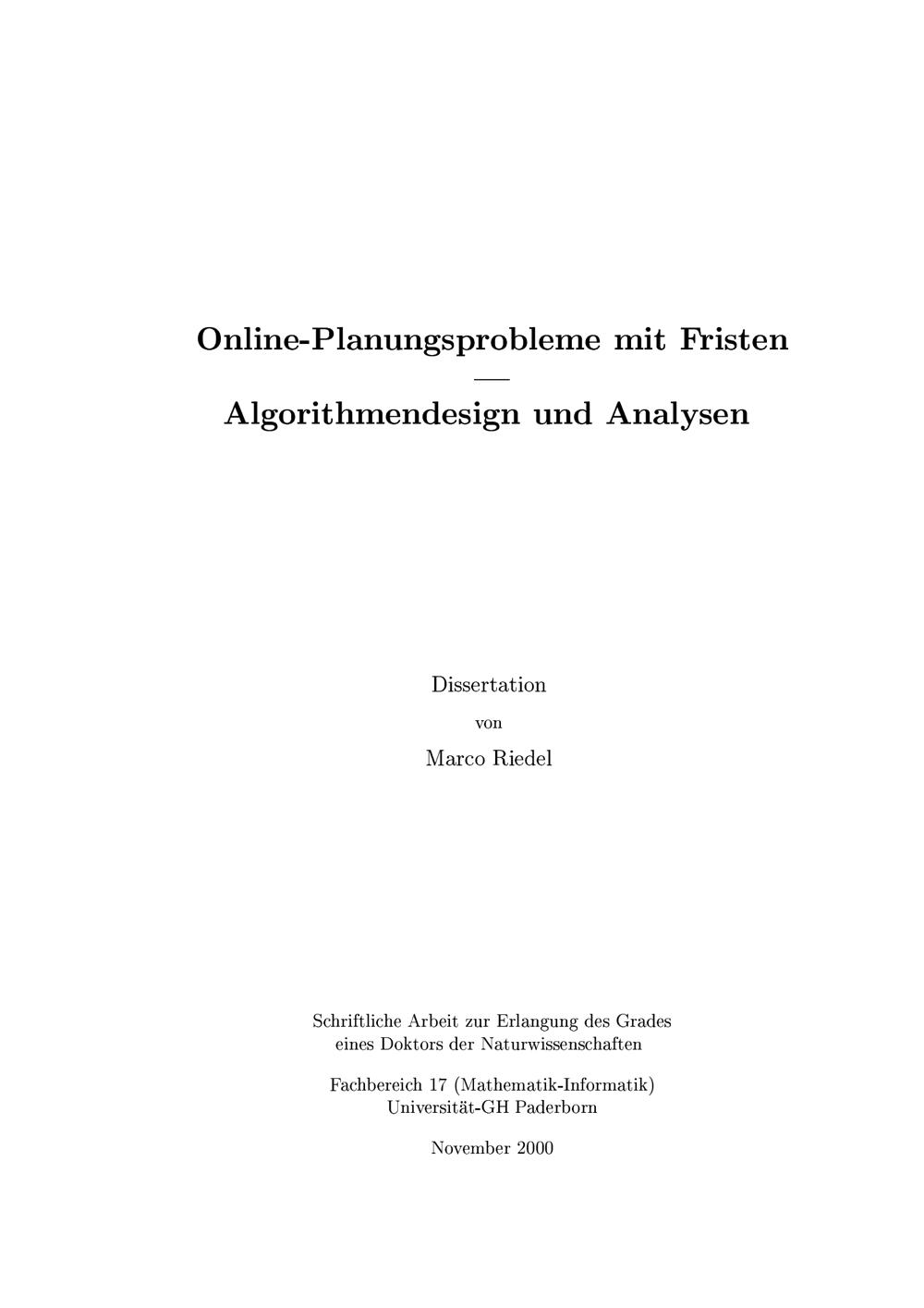 Online-Planungsprobleme mit Fristen : Algorithmendesign und Analysen / von Marco Riedel