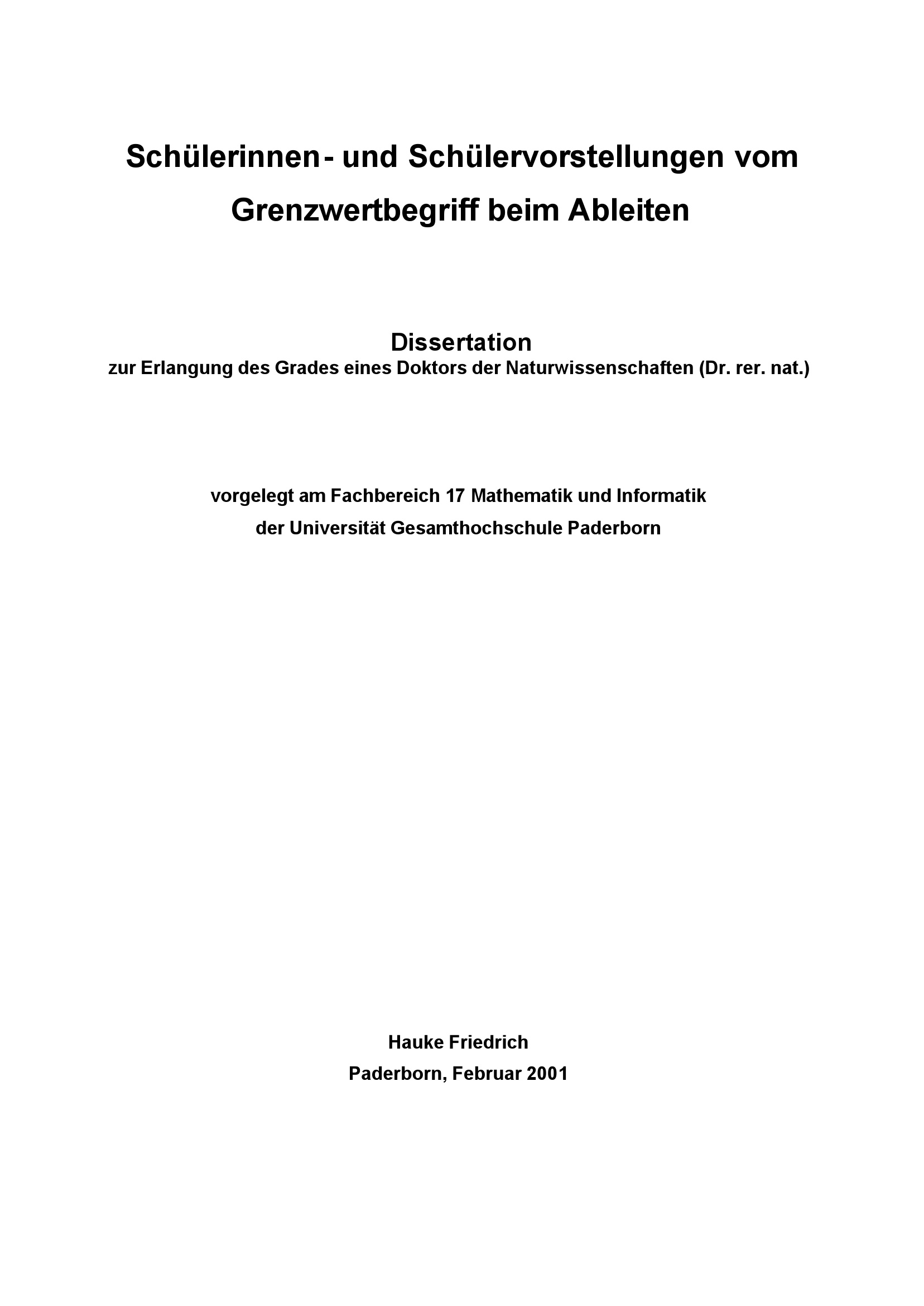 Schülerinnen- und Schülervorstellungen vom Grenzwertbegriff beim Ableiten / Hauke Friedrich